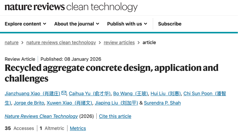 Professor Xiao Jianzhuang’s Team Publishes Review Article in Nature Reviews Clean Technology