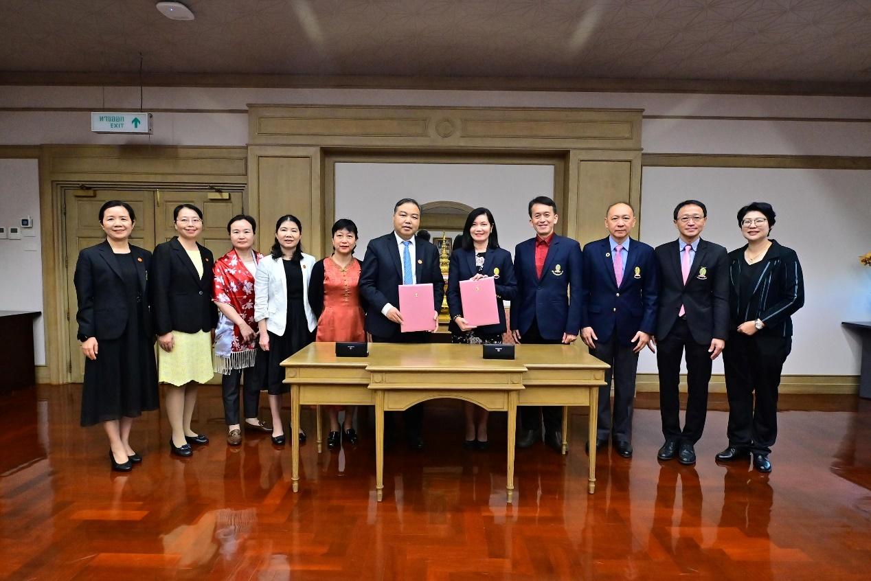 On January 16, Xiao led the delegation to visit Chulalongkorn University in Thailand. Kaywalee Chatdarong, Deputy Vice Chancellor of Chulalongkorn University, attended the meeting. Officials from the Faculty of Engineering, School of Agricultural Resources and other faculties and schools attended the symposium. The two sides agreed to cooperate in the fields of civil engineering, machinery, chemical engineering, medicine and other fields on teacher-student exchanges, student joint training, building high-level research centers, and jointly carrying out international cooperation project declaration and research. A letter of intent for cooperation was signed in the symposium. After that, the delegation visited the teaching buildings and laboratories of the Faculty of Engineering of Chulalongkorn University.