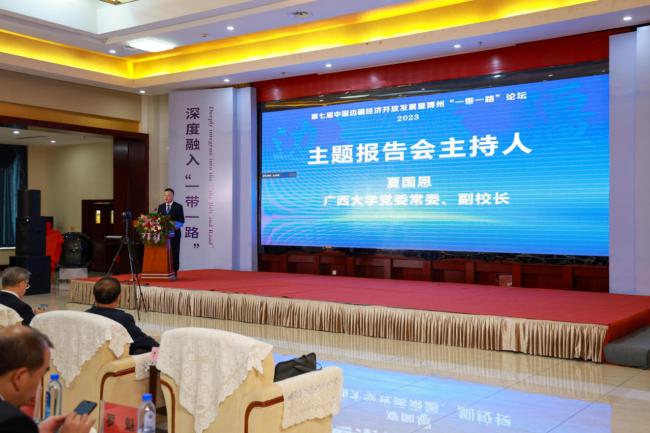 Wang Naixue pointed out that holding the 7th China Frontier Economy Forum for Opening-up and Development against the backdrop of the 10th anniversary of the BRI is of significant importance. It allows for a thorough examination of the impact and experiences gained in the past ten years regarding the development of frontier economies under the BRI. As one of the nine frontier provinces in China, Guangxi must continuously implement the important instructions of General Secretary Xi Jinping and promote the high-quality development of ethnic minority areas in the frontier regions. Guangxi University, as the only Project 211 university in Guangxi, with a focus on the two major characteristics of ASEAN and frontier ethnic minorities, has deeply integrated into the BRI. It is implementing an international development strategy that involves cultivating within ASEAN and facing the world. GXU emphasizes the unique characteristics of frontier ethnic minorities and nurtures a research team dedicated to frontier economics. This team conducts in-depth research on the patterns of frontier economic development and existing challenges, providing intellectual and talent support for the opening-up and development of Guangxi's economy in the new era. He hopes that this forum can play a more significant role in better integrating with the BRI, promoting the development of frontier areas, enriching the people, and achieving high-quality economic development in frontier regions. This, in turn, will advance the integration of theory and practice in frontier economic development and facilitate the involvement of frontier provinces in the BRI, as well as continue to strengthen the construction of a new intellectual hub for frontier economics.