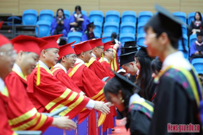 On June 28th,2023, Guangxi University held the graduation ceremony and degree awarding ceremony for the 6,005 undergraduate students of 2023. Wang Naixue (Vice Chairman of the Political Consultative Conference of Guangxi Zhuang Autonomous Region and Secretary of the CPC Guangxi University Committee), Li Jibing (Liaison officer of the Party Building of the Ministry of Education), Han Linhai (Deputy Secretary of the CPC Guangxi University Committee, President of Guangxi University ), Lv Yi (Secretary of the Discipline Inspection Commission of CPC Guangxi University Committee), Ma Shaojian, Fan Zuojun,Liu Xiang, Tian Lihui, Xiao Jianzhuang (all Vice Presidents), Ning Xuchu (Chief Accountant), Zhao Shuangliang (Assistant Principal, Vice Provost, Director of the Development Planning Division), members of the University Academic Degree Evaluation Committee, teacher representatives, Alumni representatives and graduate representatives attended the ceremony. Feng Jiaxun (Vice President and Provost) presided over the ceremony.