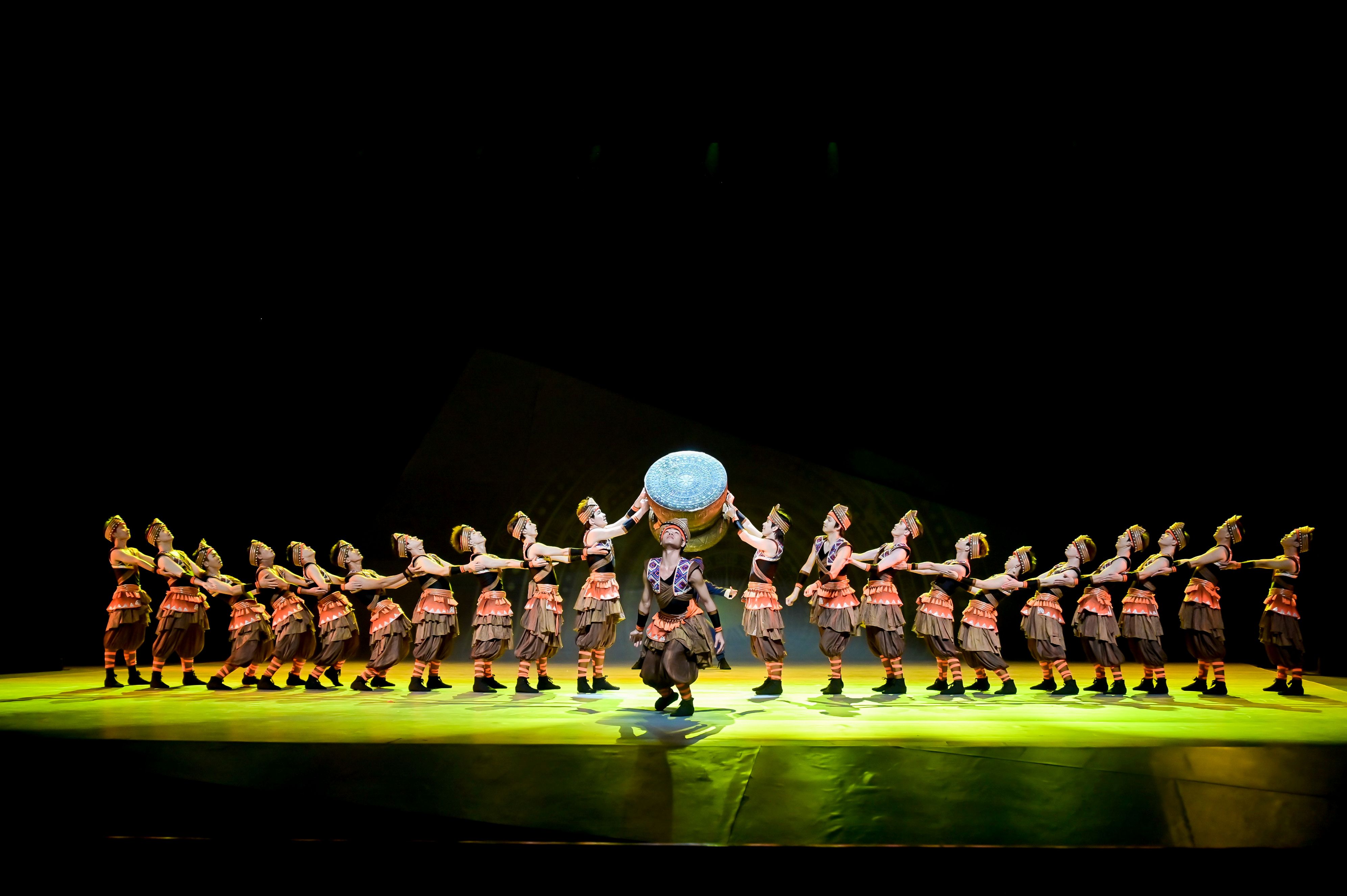 The Drum Forgers, under the creative guidance of Professor Fu Yiling from the School of The Arts of Guangxi University, is based on a true story and utilizes Zhuang dance as its core element. Focusing on the Guangxi Intangible Cultural Heritage—copper drum casting technique, the piece employs artistic narration to vividly portray the story of a Zhuang master and apprentice who successfully revived the long-lost Zhuang copper drum casting technique in modern times. It depicts a touching journey of exploration, failure, success, and inheritance, paying tribute both to the contemporary craftsman spirit of striving for excellence and to the enduring vitality of ethnic culture passed down through generations. The work conveys the young generation's reverence for traditional culture and their sense of responsibility in its transmission.