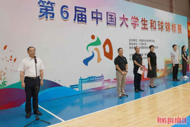 Sponsored by China Student Sports Federation and organized by Guangxi University, the 6th China Uniball Tournament for College Students was held in the basketball hall of the west campus at Guangxi University from September 21st to 27th. Yu Wenjin, member of the Standing Committee of the CPC GXU Committee and Vice President of Guangxi University, attended the opening ceremony and announced the commencement of the tournament. Nearly 200 team leaders, coaches and athletes of 21 teams hailing from 9 provinces, municipalities, and autonomous regions participated in the tournament which consisted of 3 groups: Group A (Sunshine Group), Group B (Higher Vocational College Group) and Group C (High-Level Group).