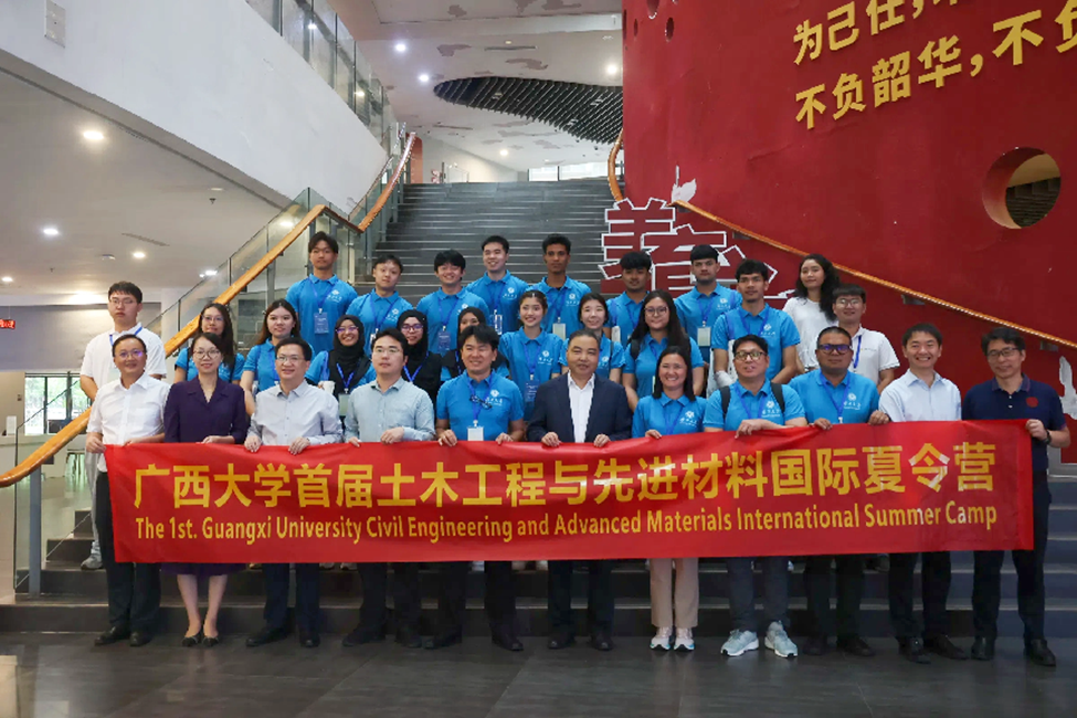 ដើម្បីបង្កើនការផ្លាស់ប្តូរអន្តរជាតិ ពង្រឹងកិច្ចសហប្រតិបត្តិការជាមួយបណ្តាប្រទេសអាស៊ាន ពង្រីកឥទ្ធិពលសកលនៃវិស្វកម្មសំណង់ស៊ីវិល និងសម្ភារៈកម្រិតខ្ពស់ និងជំរុញគំនិតផ្តួចផ្តើម Double First-Class Initiative របស់ GXU ថ្មីៗនេះ សាកលវិទ្យាល័យ Guangxi បានរៀបចំជំរុំរដូវក្តៅអន្តរជាតិលើកដំបូងរបស់ខ្លួនលើវិស្វកម្មសំណង់ស៊ីវិល និងសម្ភារៈកម្រិតខ្ពស់។ ព្រឹត្តិការណ៍នេះមានការចូលរួមពីសាស្ត្រាចារ្យ និងនិស្សិតមកពីស្ថាប័នអាស៊ាន រួមមាន Universiti Teknologi Brunei (ប្រ៊ុយណេ) Universiti Tunku Abdul Rahman (ម៉ាឡេស៊ី) និងសាកលវិទ្យាល័យ Suratthani Rajabhat (ប្រទេសថៃ)។ សាស្ត្រាចារ្យបណ្ឌិត Xiao Jianzhuang អនុប្រធានបានចូលរួម និងថ្លែងសុន្ទរកថាក្នុងពិធីបើក។