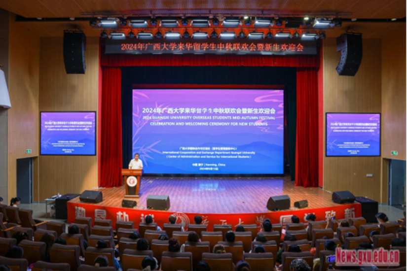 នៅថ្ងៃទី 13 ខែកញ្ញា GXU បានរៀបចំពិធីអបអរសាទរពិធីបុណ្យសែនព្រះខែឆ្នាំ 2024 និងព្រឹត្តិការណ៍ស្វាគមន៍និស្សិតអន្តរជាតិនៅសាលមហោស្រពតូចមួយនៅជាន់ទីមួយនៃមជ្ឈមណ្ឌលសកម្មភាពនិស្សិតសាកលវិទ្យាល័យ។ លោក Xiao Jianzhuang អនុប្រធាន GXU បានចូលរួមក្នុងព្រឹត្តិការណ៍នេះ និងថ្លែងសុន្ទរកថា។