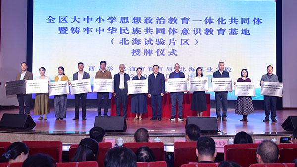 近日,广西全区大中小学思想政治教育一体化共同体暨铸牢中华民族共同体意识教育联盟(北海试验片区)建设工作启动仪式在北海职业学院举行,标志着北海试验片区相关建设工作正式开启。北海试验片区31所联盟成员单位的学校领导、教师代表和学生代表参加。