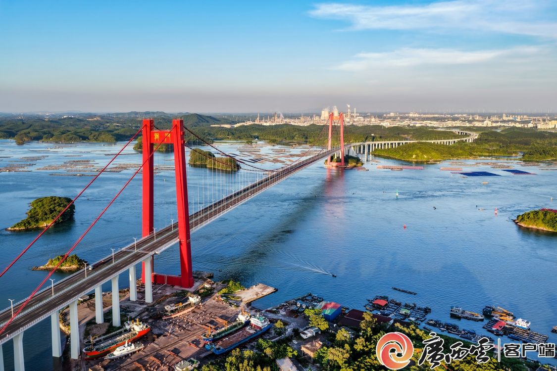 使用了近海工程混凝土耐久性定量设计关键技术建造的龙门大桥,在碧水蓝天映衬下,更显雄浑壮丽。广西云-广西日报记者 周军 摄
