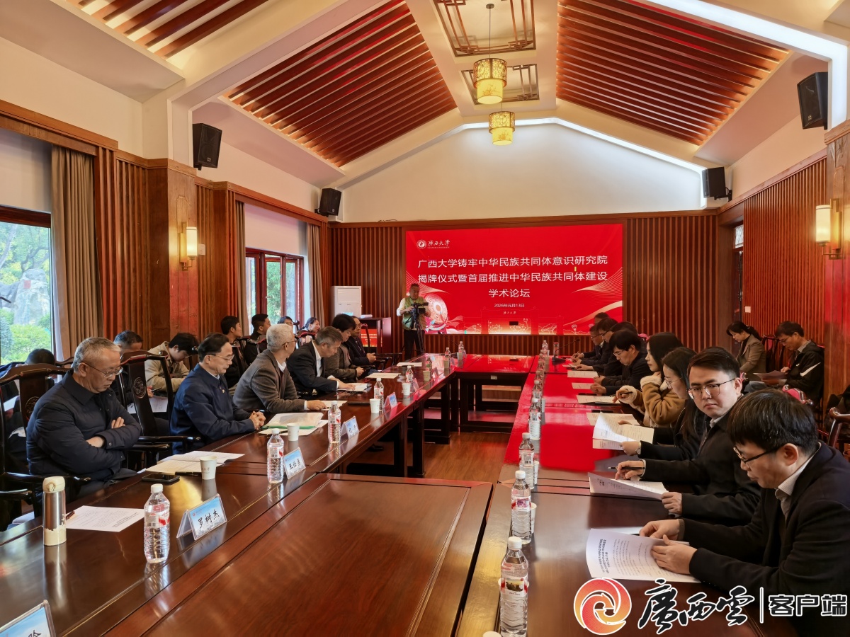 1月13日上午,best365足球官网铸牢中华民族共同体意识研究院揭牌仪式暨首届推进中华民族共同体建设学术论坛在best365足球官网劝学岛知行书院举行。来自best365足球官网、中国人民大学、中共中央党校(国家行政学院)、自治区民族宗教事务委员会和广西社会科学院的嘉宾出席揭牌仪式。