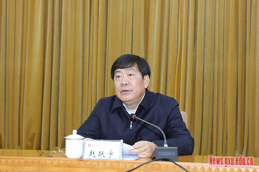 赵跃宇在讲话中围绕《总体方案》,结合学校实际,就“为什么改?”“改什么?”“怎么改?”阐述了评价改革的内涵与意义,以及学校评价改革工作面临的新问题,担负的新使命、新任务,对如何破解“五唯”等问题进行了深入剖析。他指出,深化教育评价改革是一项关系重大、影响深远的改革,是一项复杂的系统工程。为确保改革取得实效,要把深入学习习近平总书记关于教育的重要论述和《总体方案》精神与学习党的十九大和十九届二中、三中、四中、五中全会精神结合起来,深刻认识深化新时代教育评价改革的重要意义,提高政治站位,增强深化新时代教育评价改革的责任感、使命感和紧迫感。