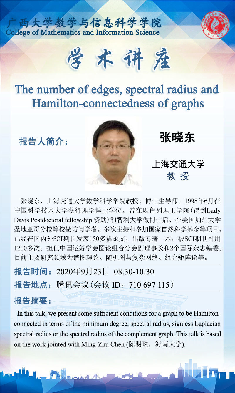 下一条:数学与信息科学学院学术讲座:3-Partite Graphs without 4-Cycles
