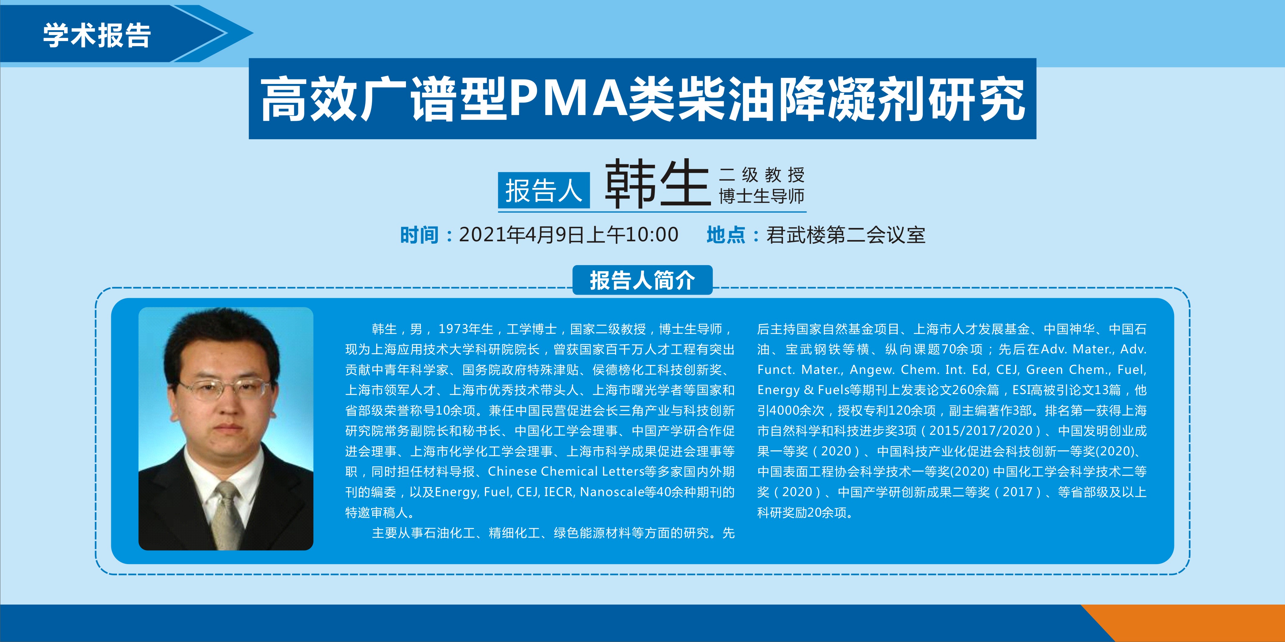 化学化工学院学术报告:高校广谱型PMA类柴油降凝剂研究