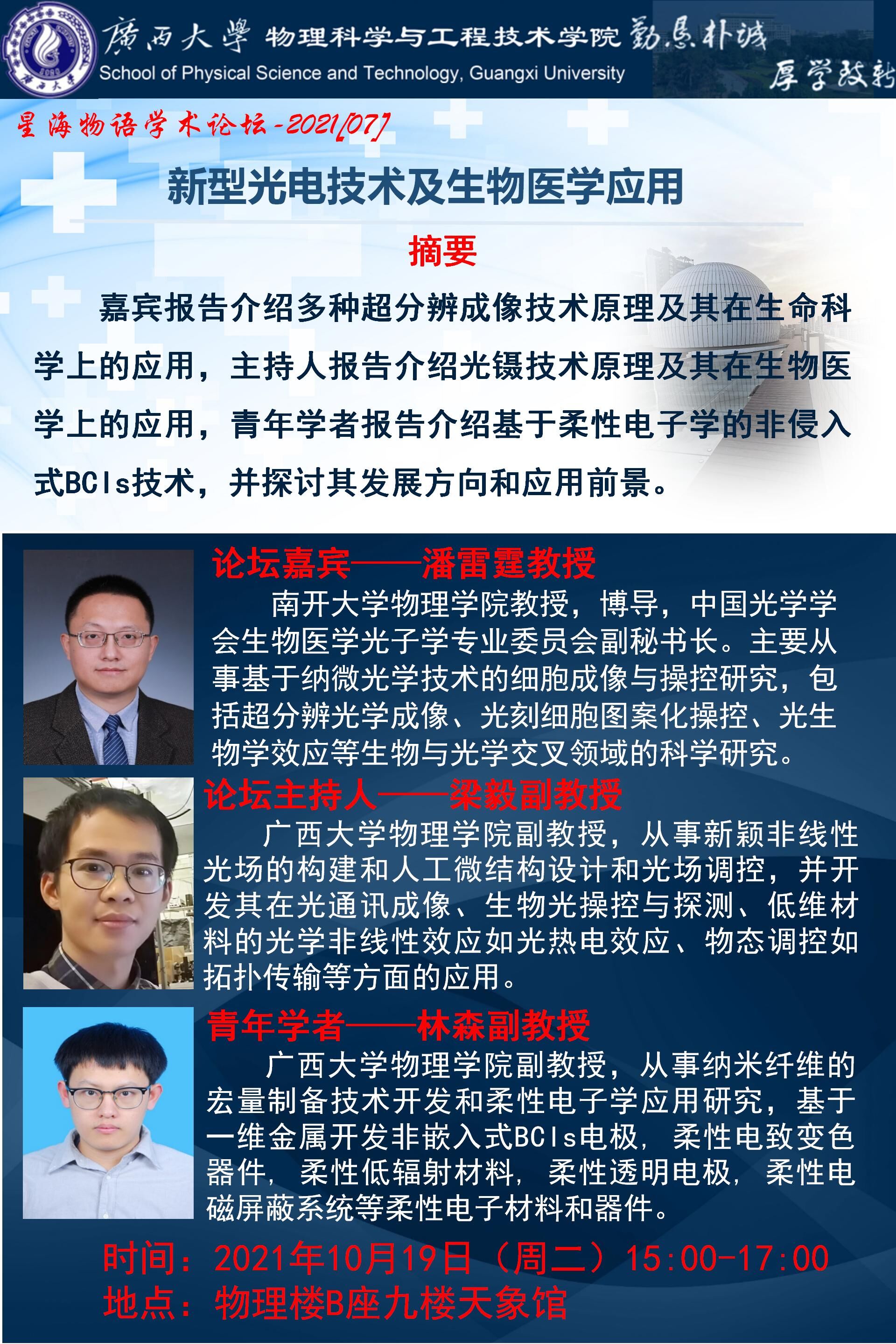 物理科学与工程技术学院学术报告:新型光电技术及生物医学应用