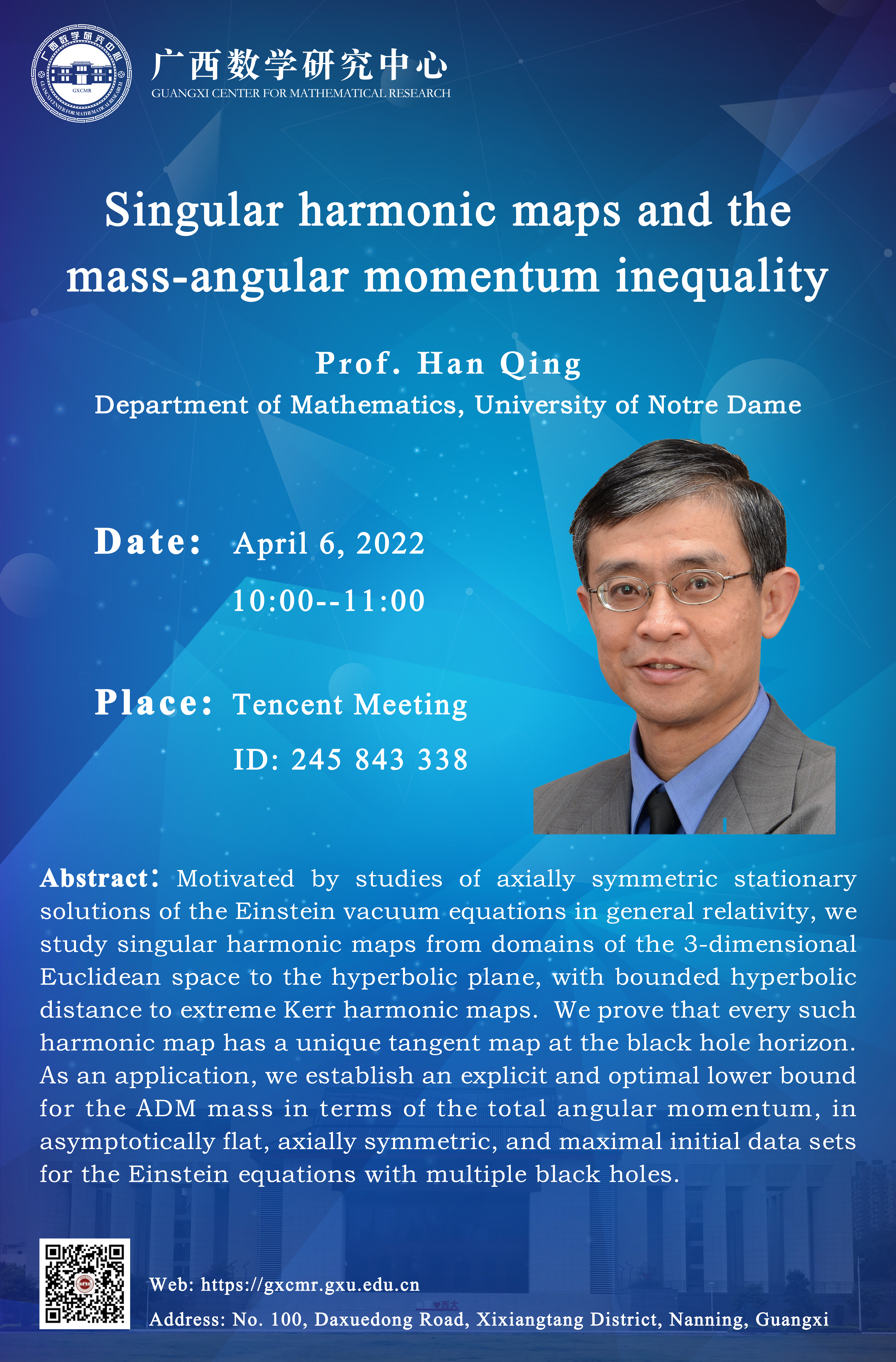 广西数学研究中心学术报告:Singular harmonic maps and the mass-angular momentum inequality