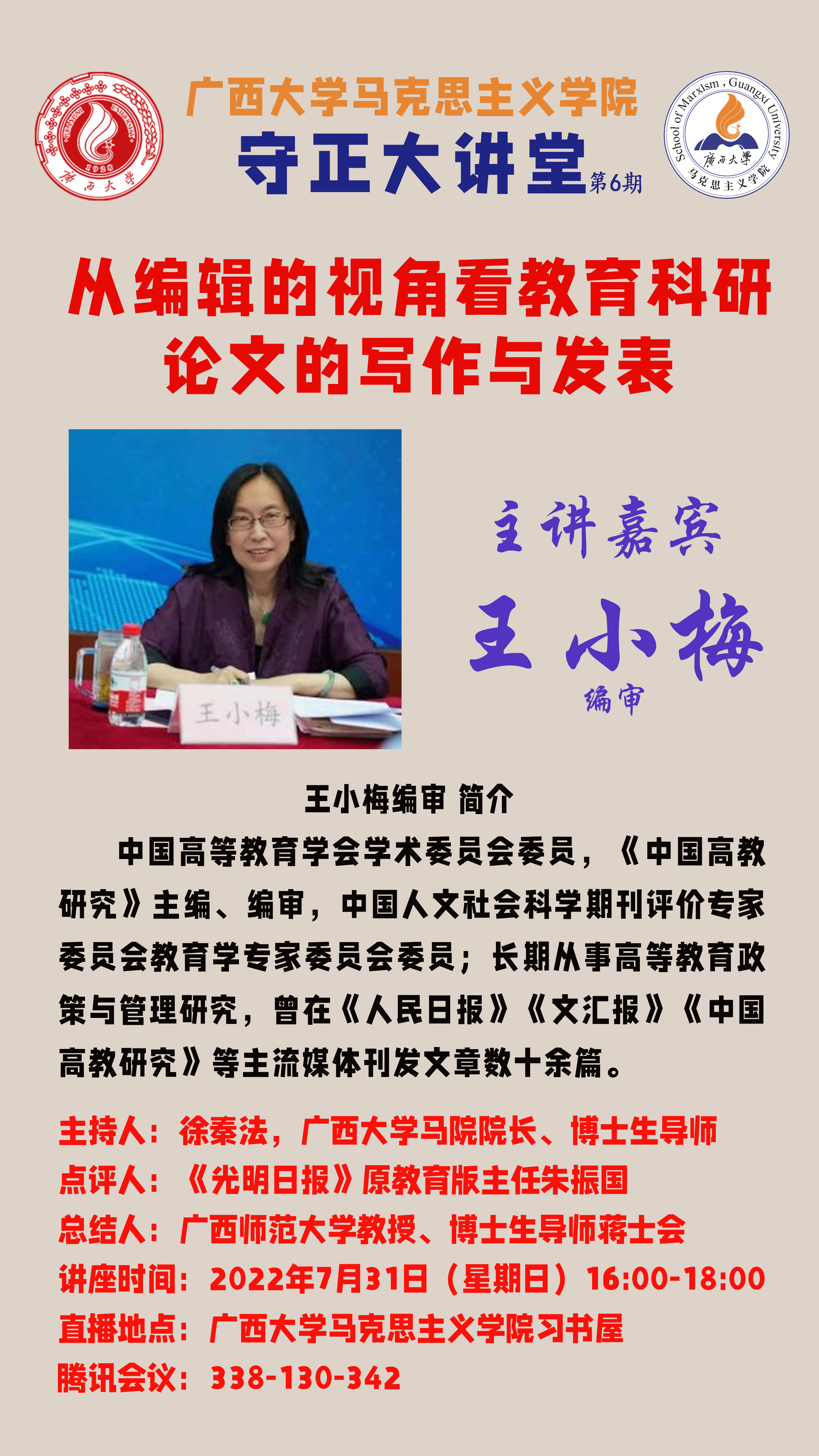 马克思主义学院守正大讲堂第6期:从编辑的视角看教育科研论文的写作与发表