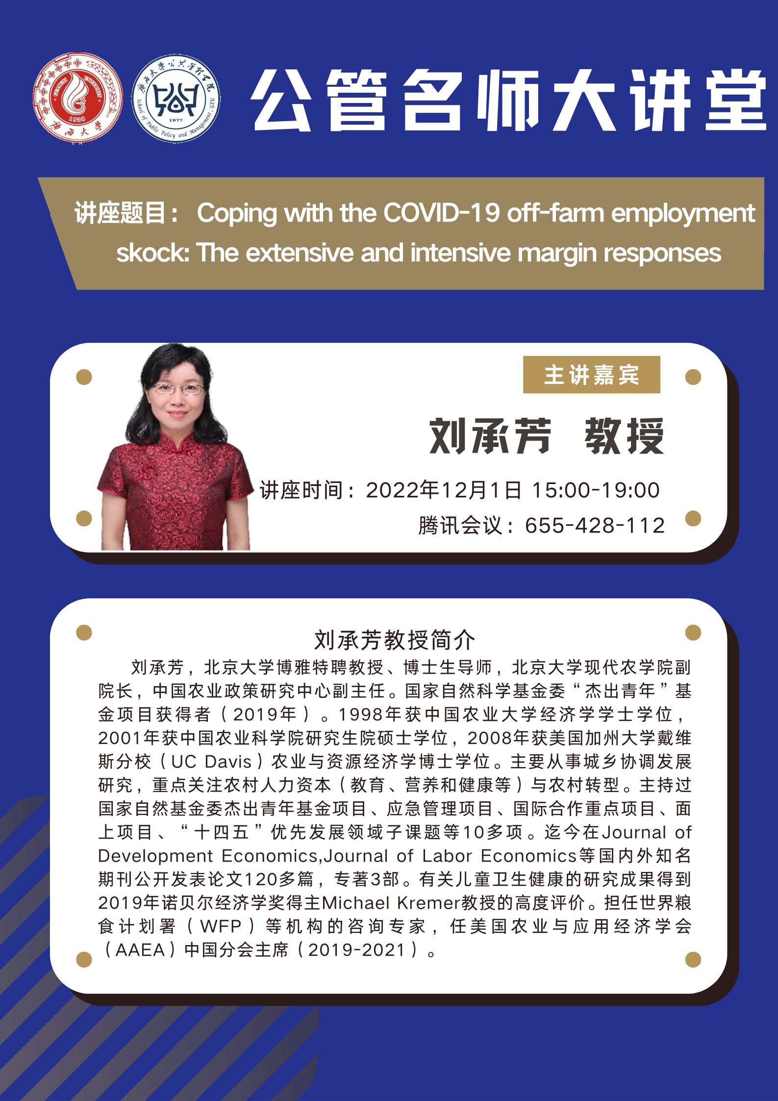 公管名师大讲堂:Coping with the COVID-19 off-farm employment shock: The extensive and intensive margin responses