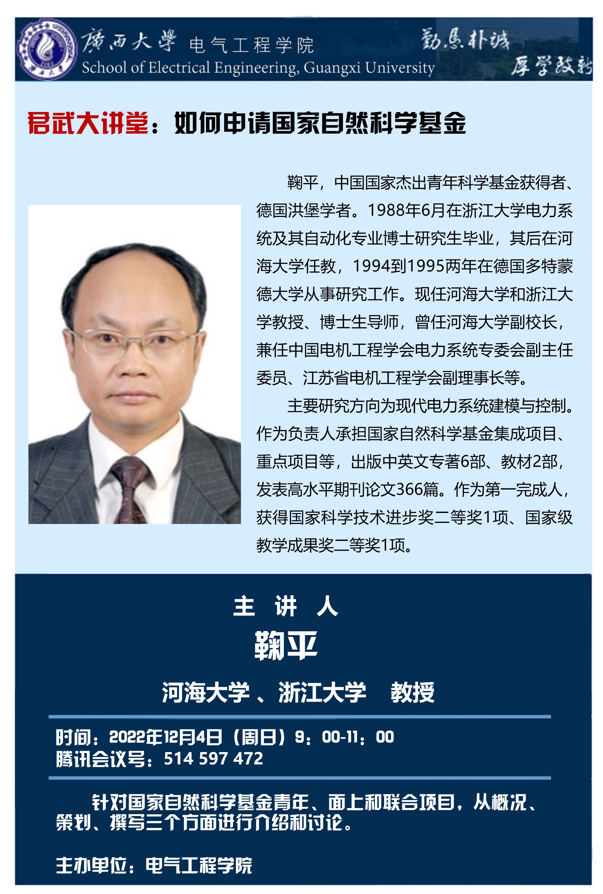best365足球官网电气工程学院学术报告:如何申请国家自然科学基金