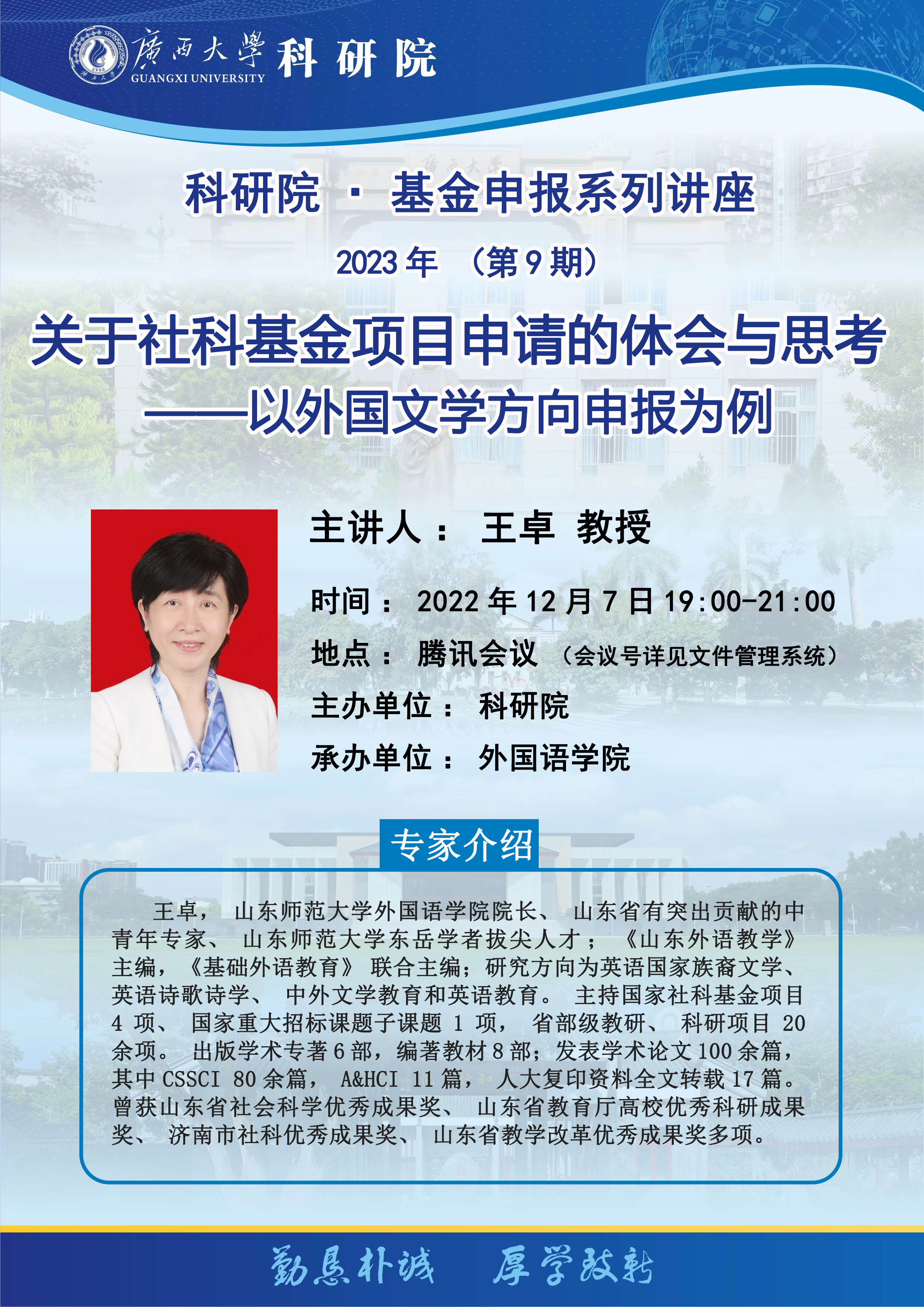 科研院·基金申报系列讲座 2023年(第9期)关于社科基金项目申请的体会与思考——以外国文学方向申报为例