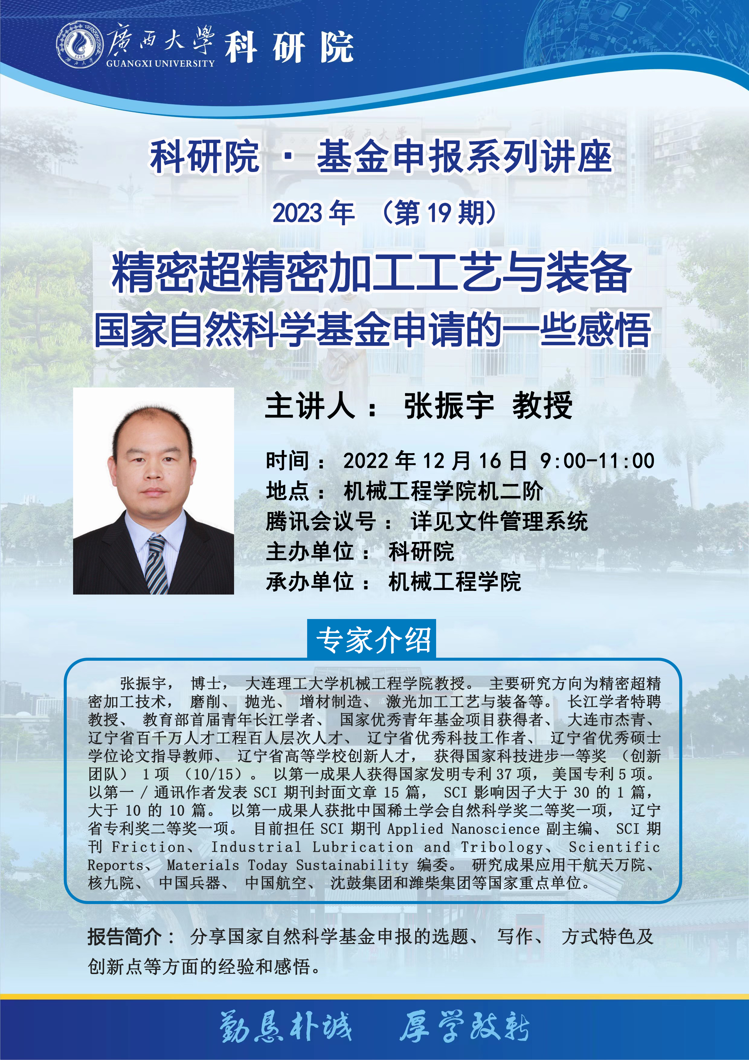 科研院·基金申报系列讲座2023年(第19期)密超精密加工工艺与装备/国家自然科学基金申请的一些感悟