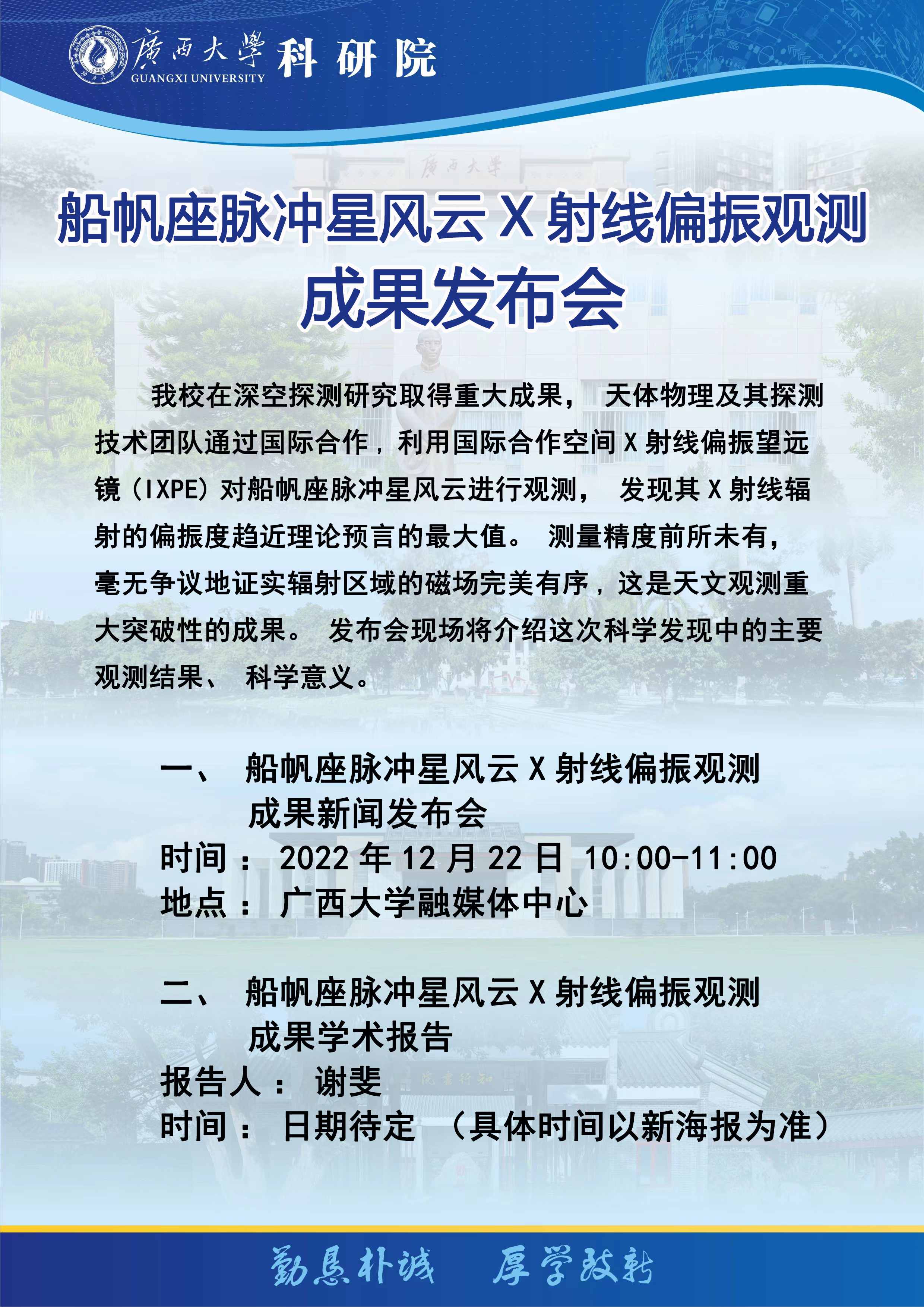 重大成果发布会:船帆座脉冲星风云X射线偏振趋近同步辐射理论极限
