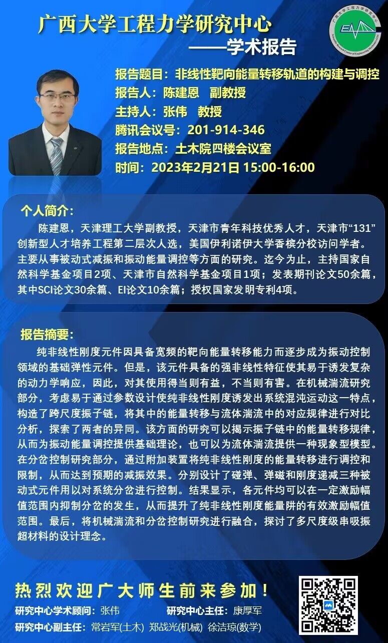 best365足球官网工程力学研究中心学术报告:非线性靶向能量转移轨道的构建与调控