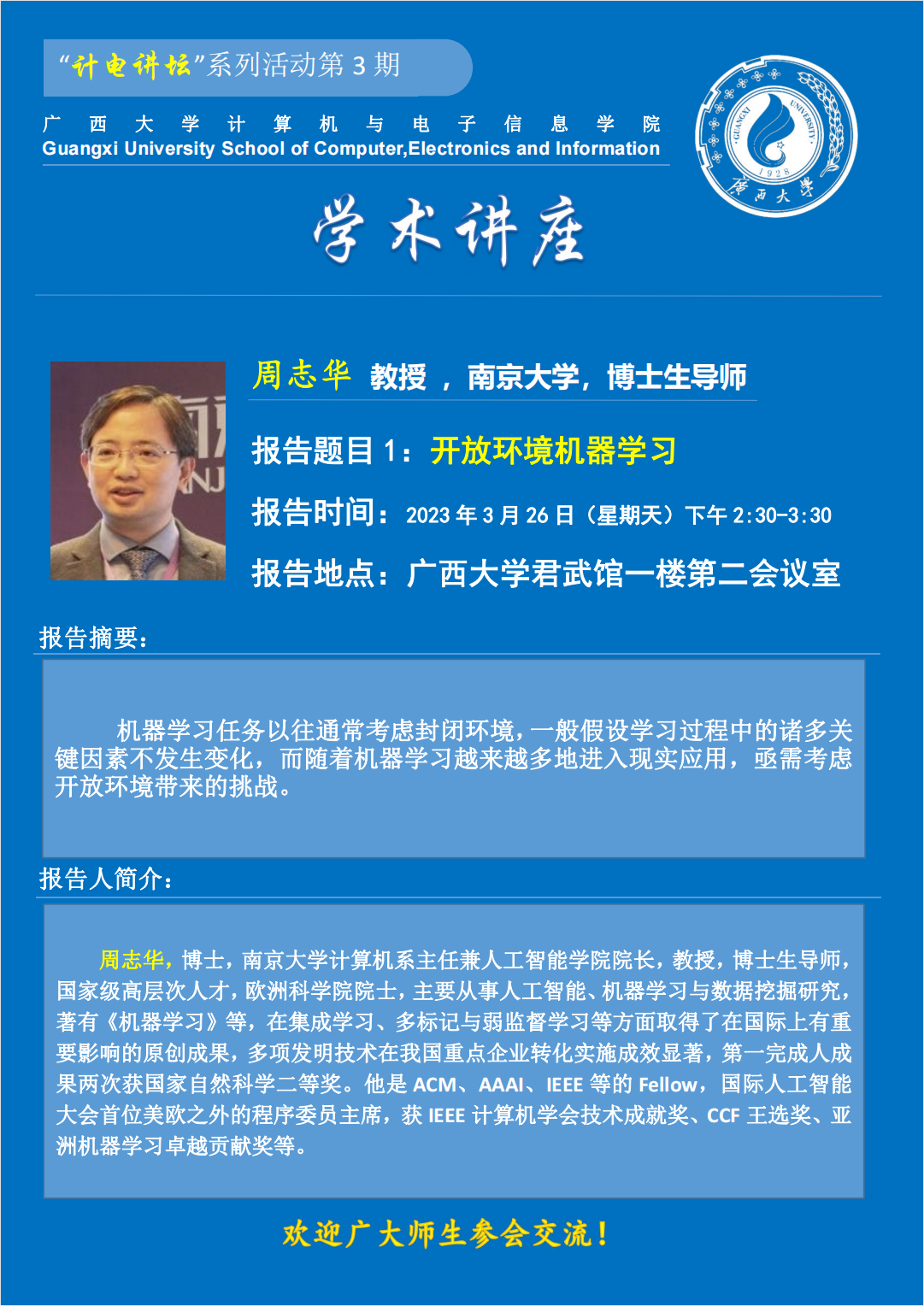 “计电讲坛”系列活动第3期:专家学术报告会