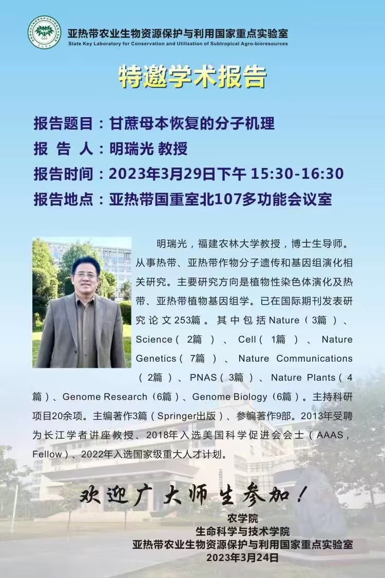 亚热带国重实验室特邀学术报告:甘蔗母本恢复的分子机理