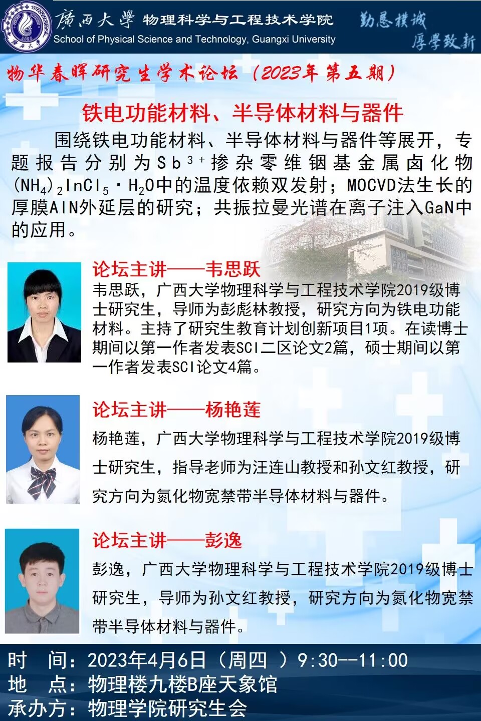 物理学院2023年物华春晖学术论坛(第五期):铁电功能材料、半导体材料与器件