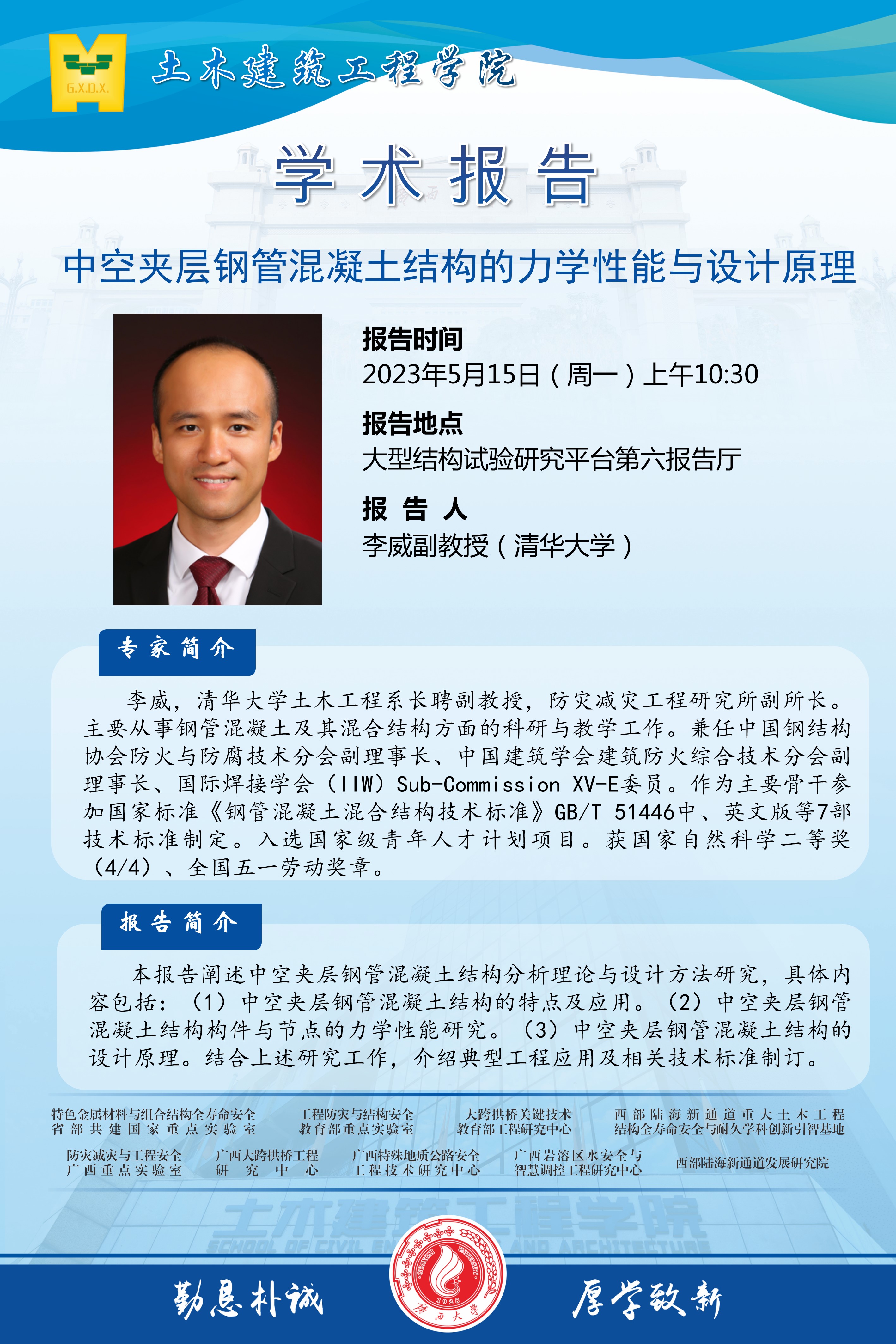 土木建筑工程学院学术报告:中空夹层钢管混凝土结构的力学性能与设计原理