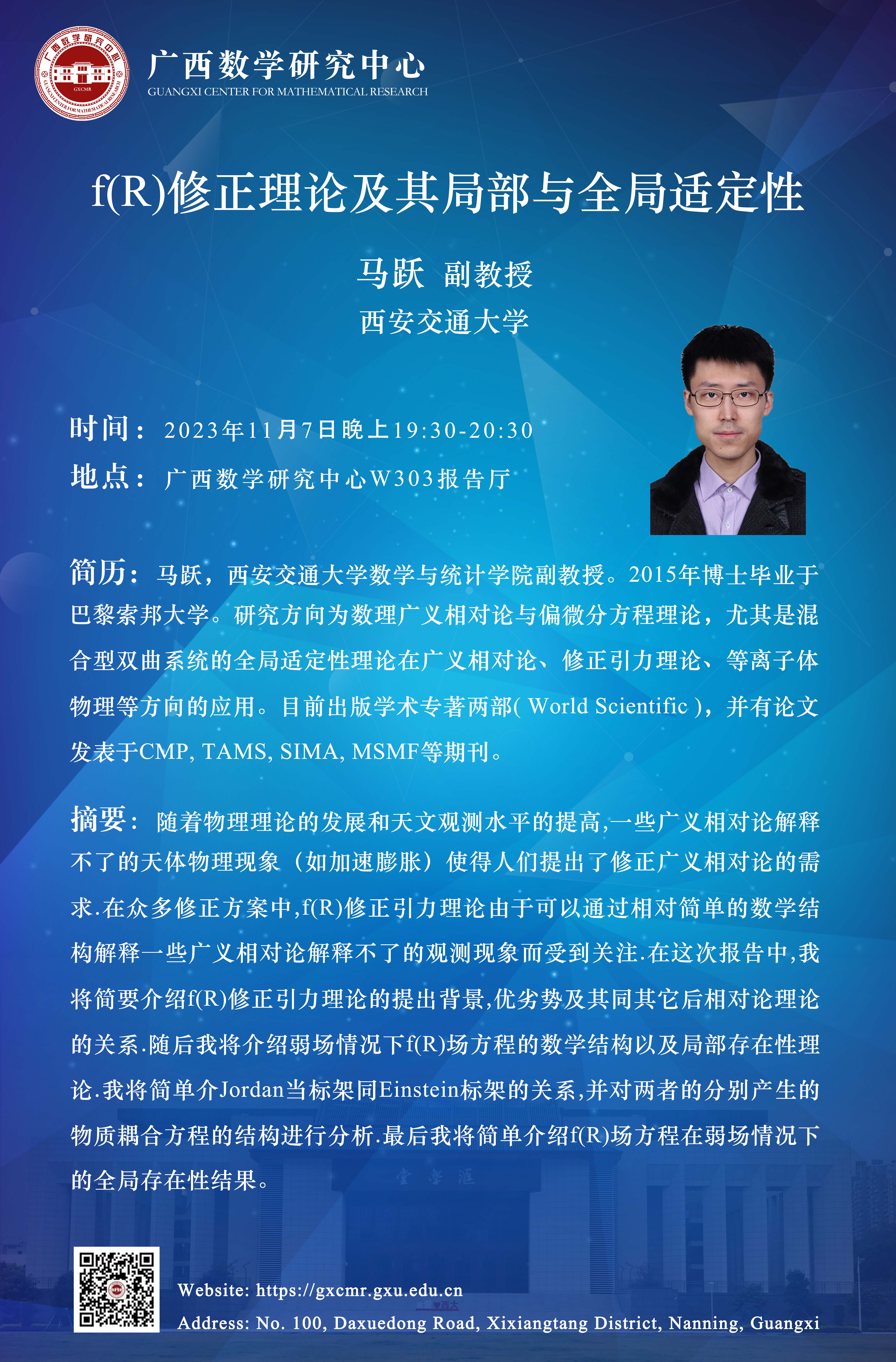 主讲人 马跃 副教授(西安交通大学) 地址 best365足球官网广西数学研究中心W303报告厅