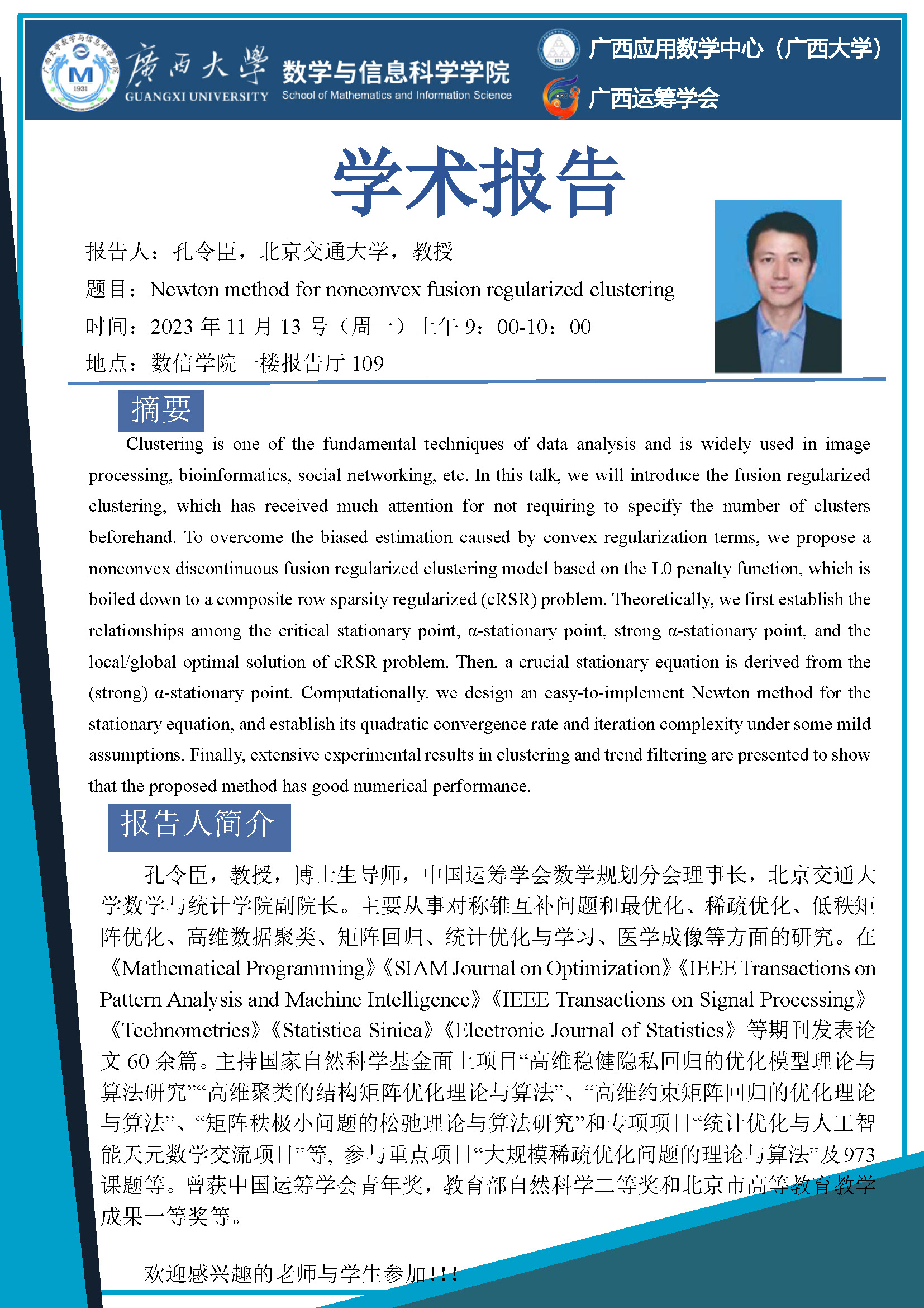 数信学院学术报告:Newton method for nonconvex fusion regularized clustering