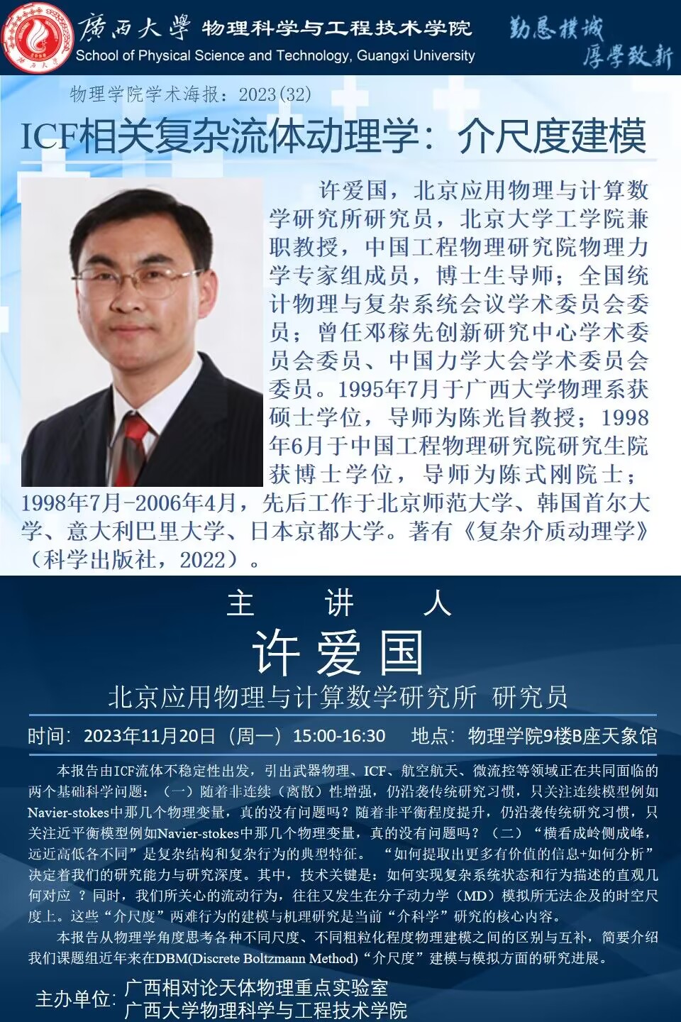 物理学院2023年学术报告系列之32:ICF相关复杂流体动理学——介尺度建模