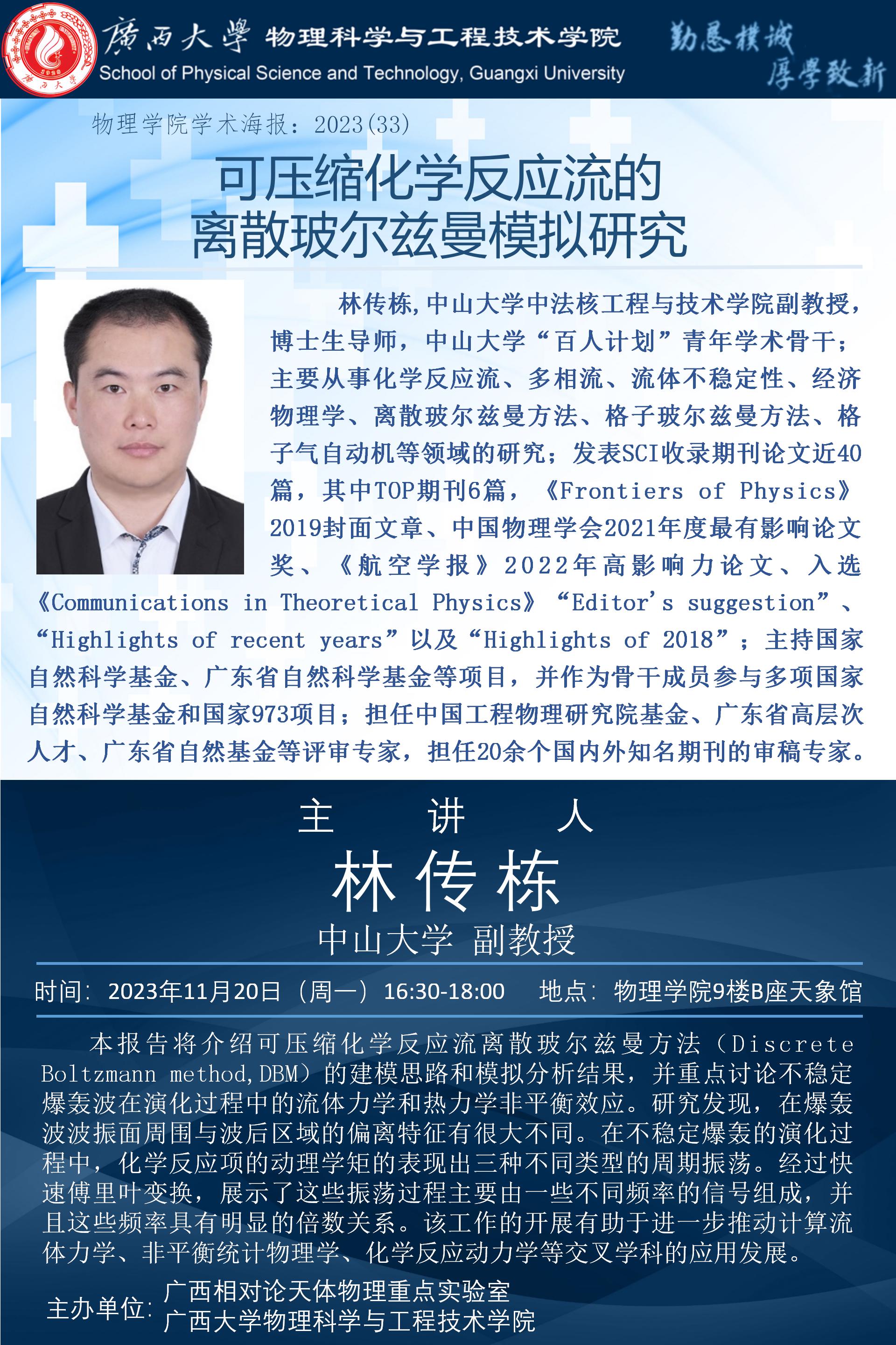 物理学院2023年学术报告系列之33:可压缩化学反应流的离散玻尔兹曼模拟研究