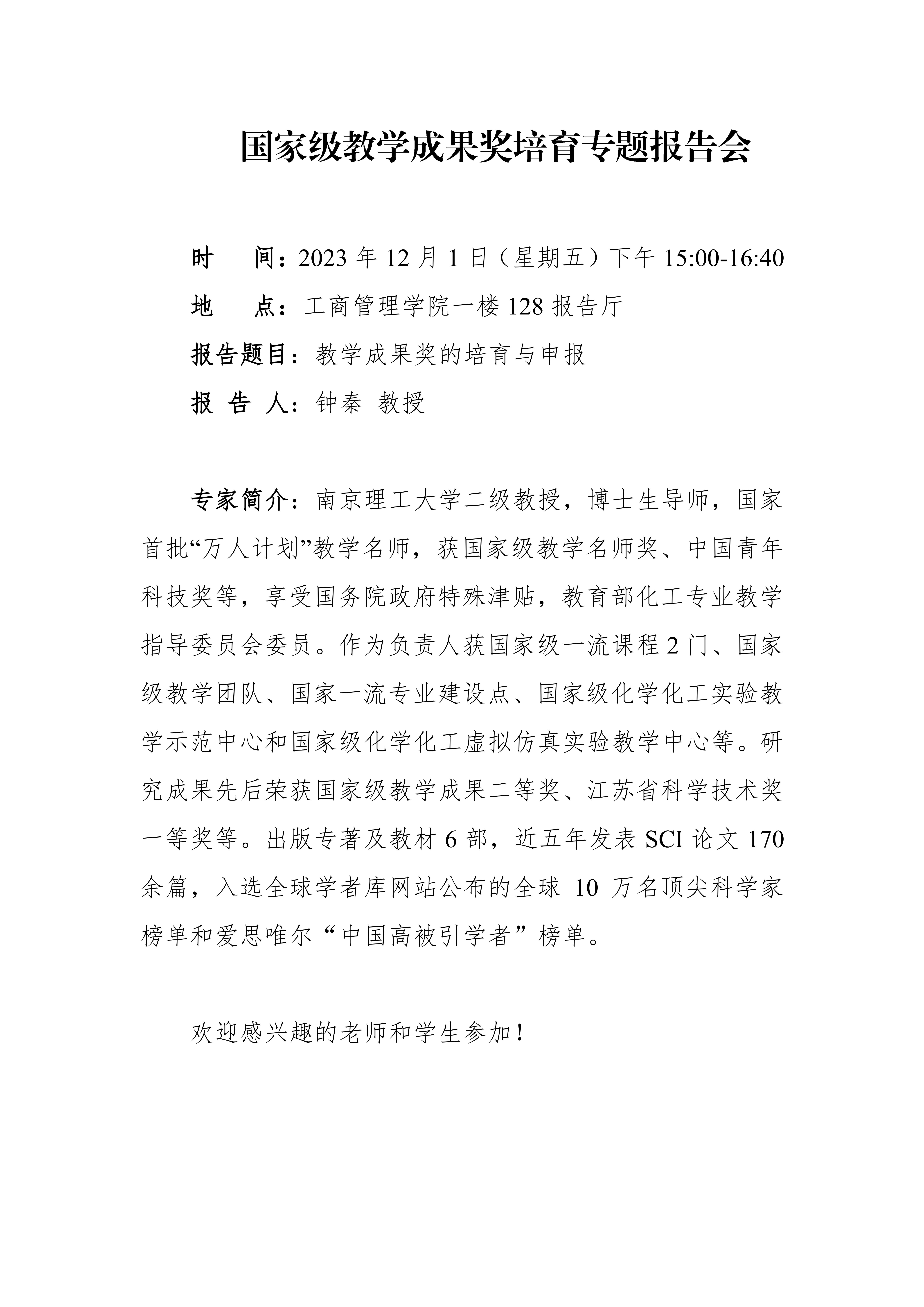 国家级教学成果奖培育专题报告会:教学成果奖的培育与申报