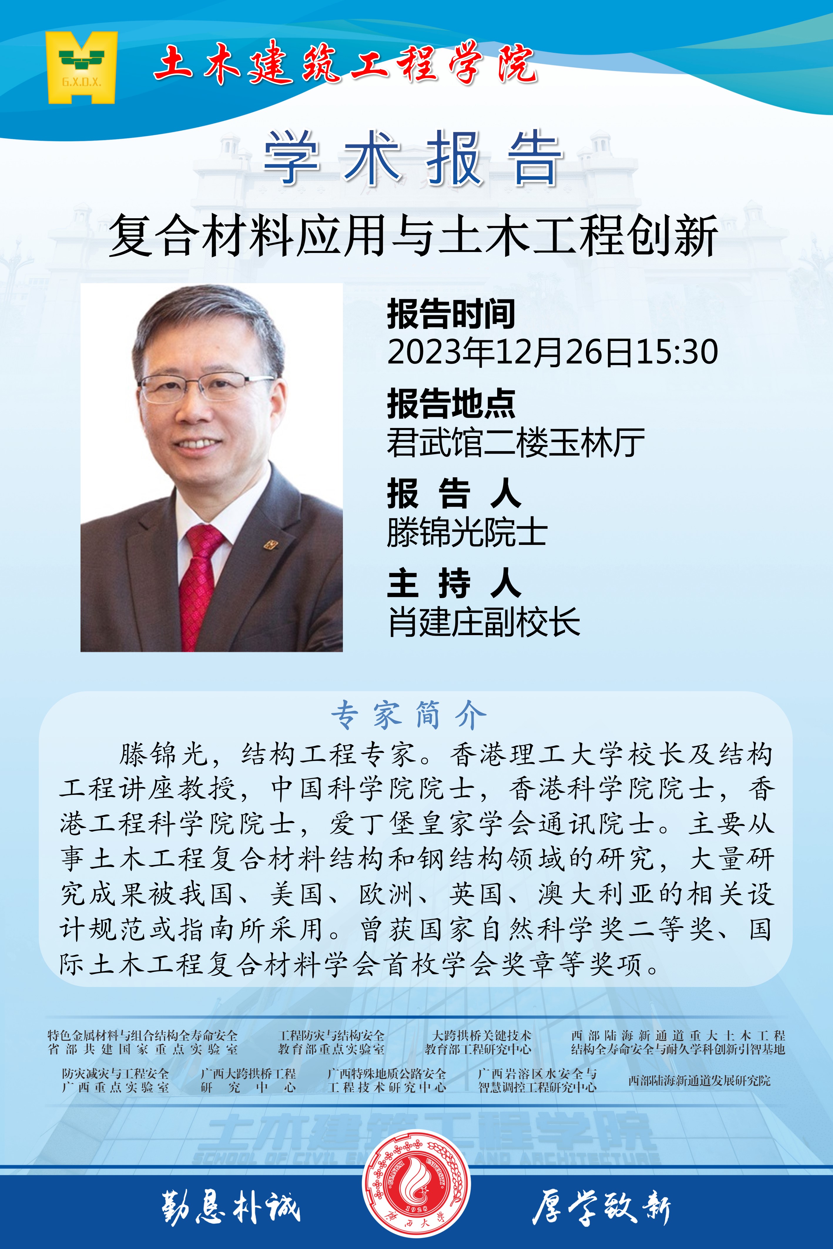主讲人 滕锦光院士 地址 君武馆二楼玉林厅