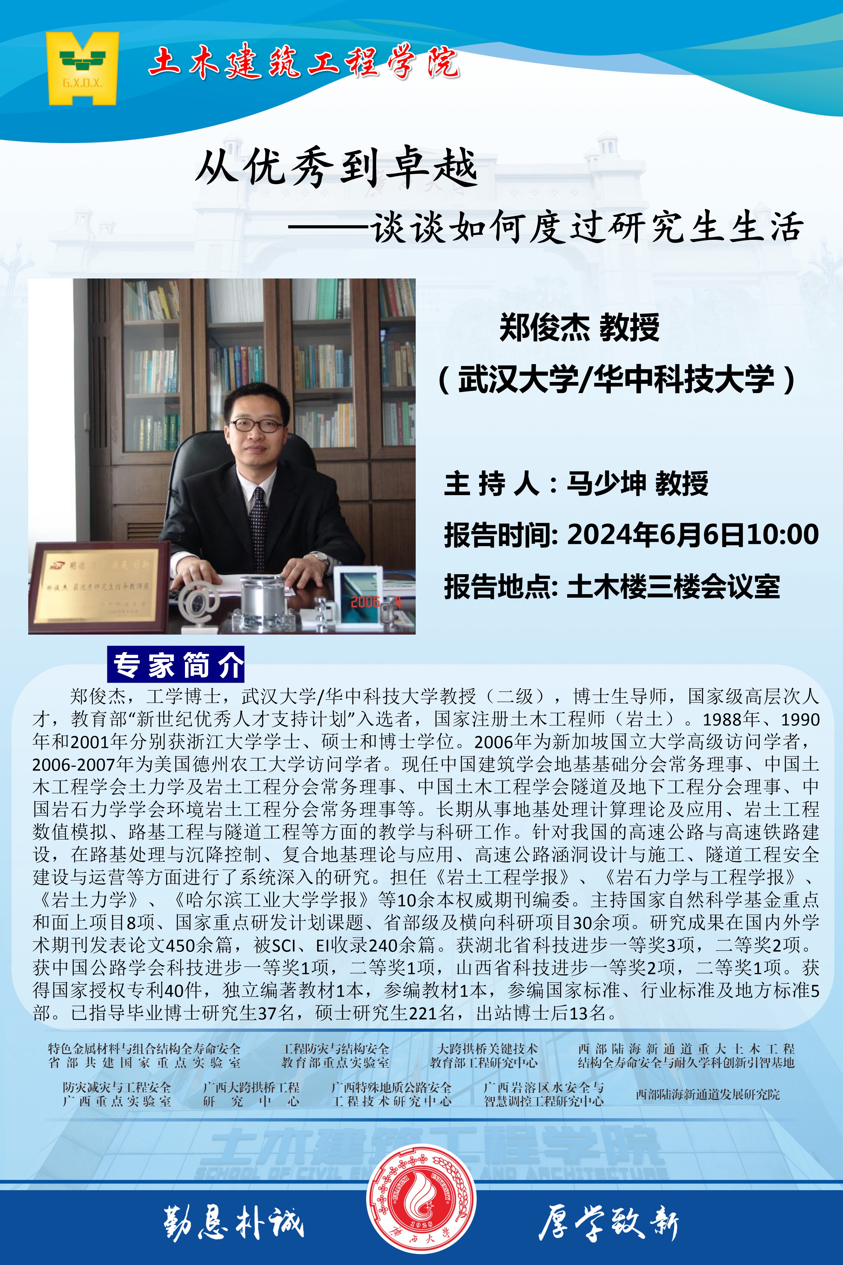 主讲人 郑俊杰 教授(武汉大学/华中科技大学) 地址 土木楼三楼会议室