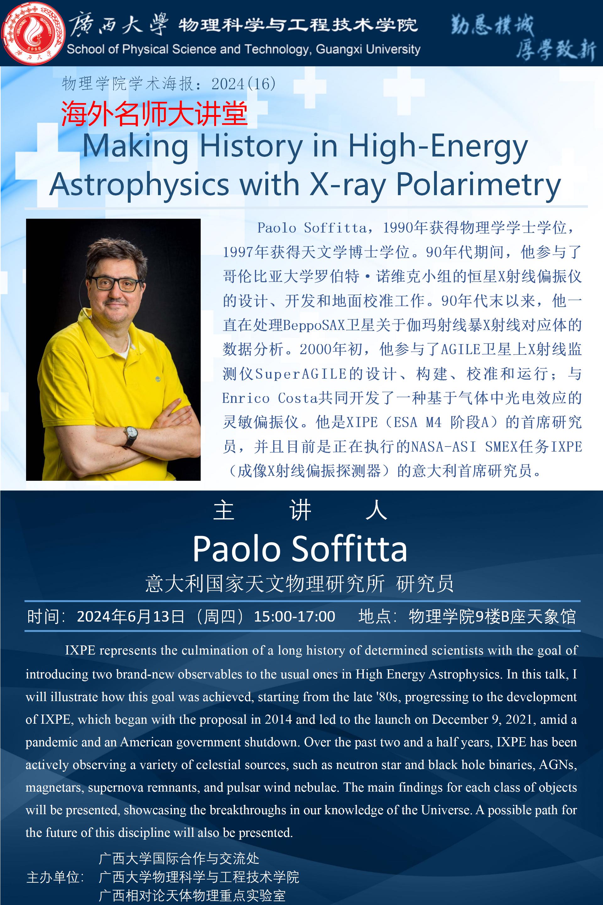 主讲人 Paolo Soffitta 地址 物理学院9楼B座天象馆