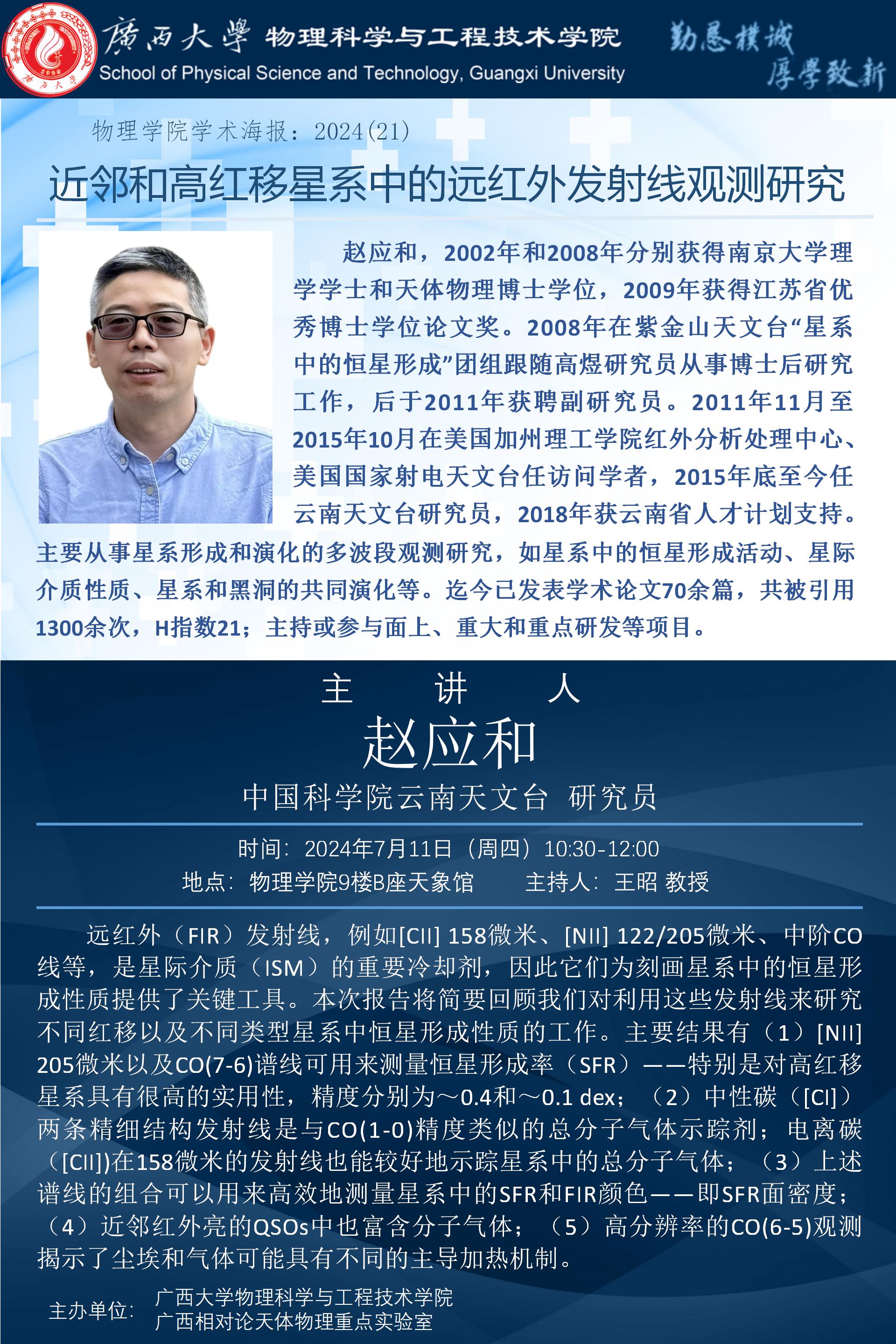 物理学院2024年学术报告之21:近邻和高红移星系中的远红外发射线观测研究