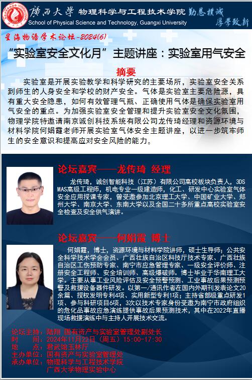 “实验室安全文化月”主题讲座:实验室用气安全