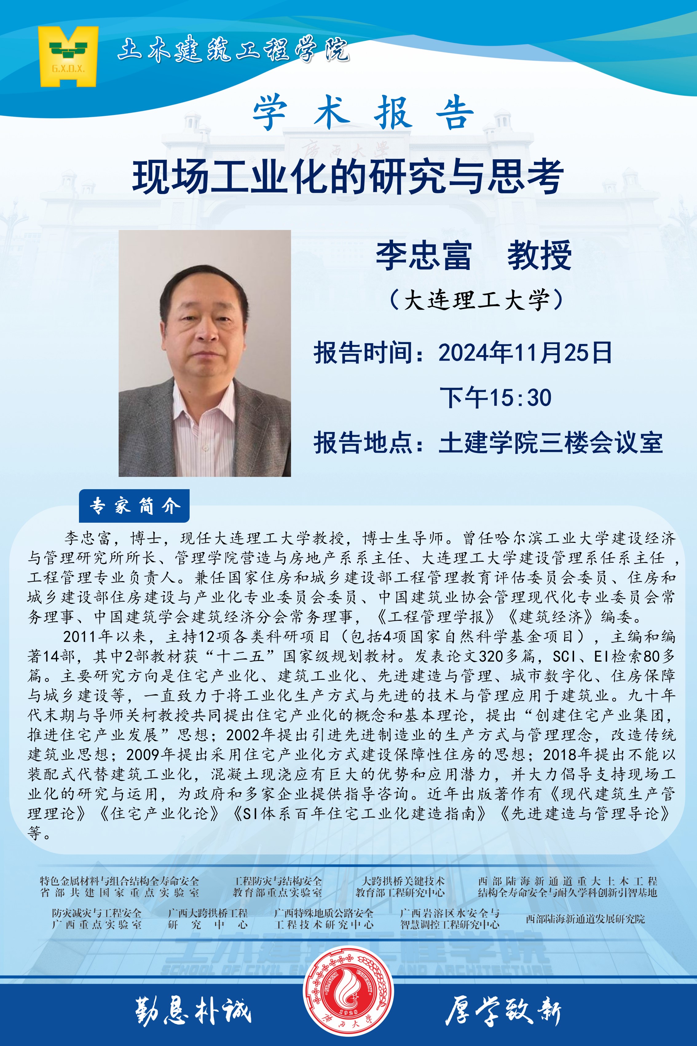 土建学院学术报告:现场工业化的研究与思考