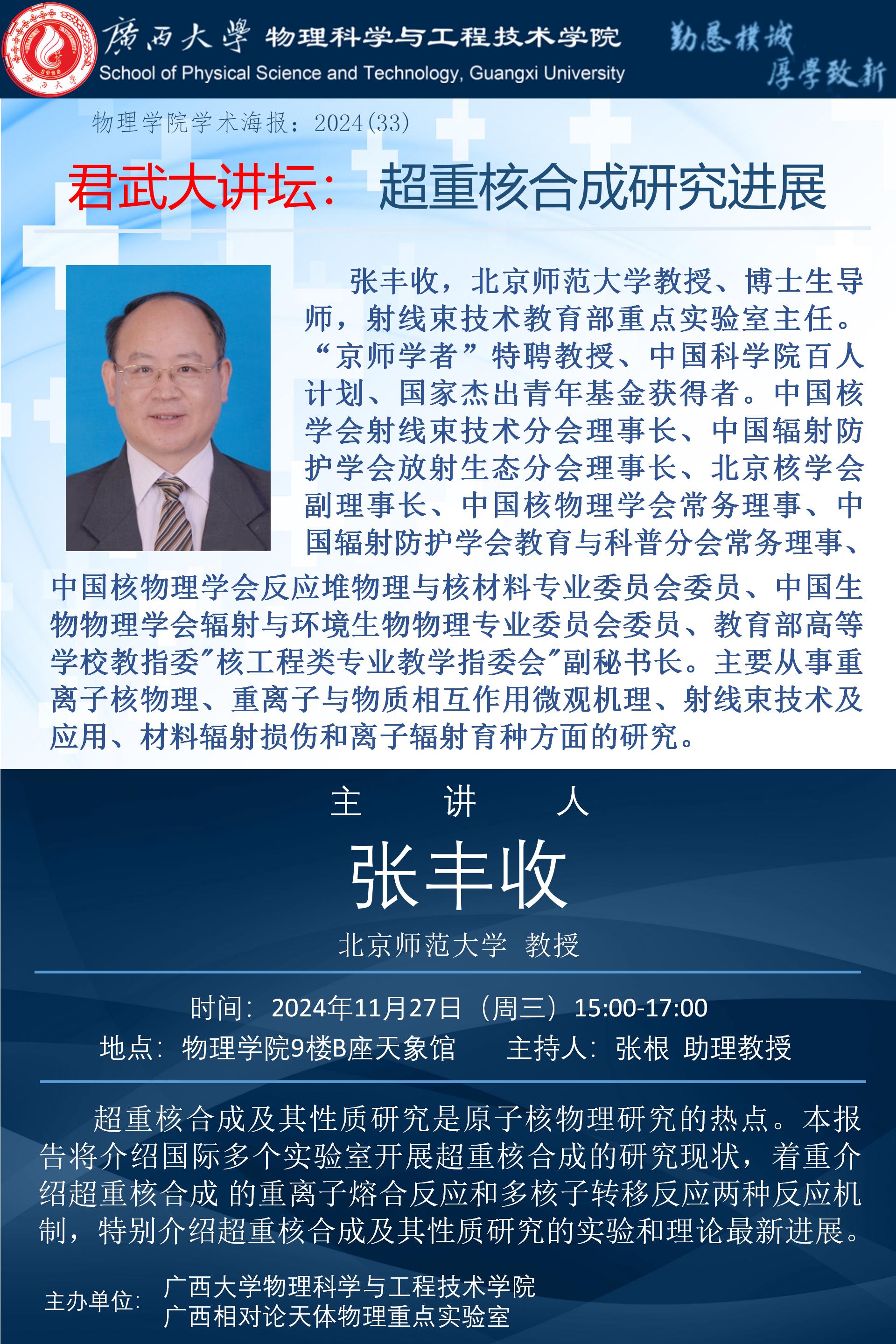 君武大讲坛、物理学院学术报告:超重核合成研究进展