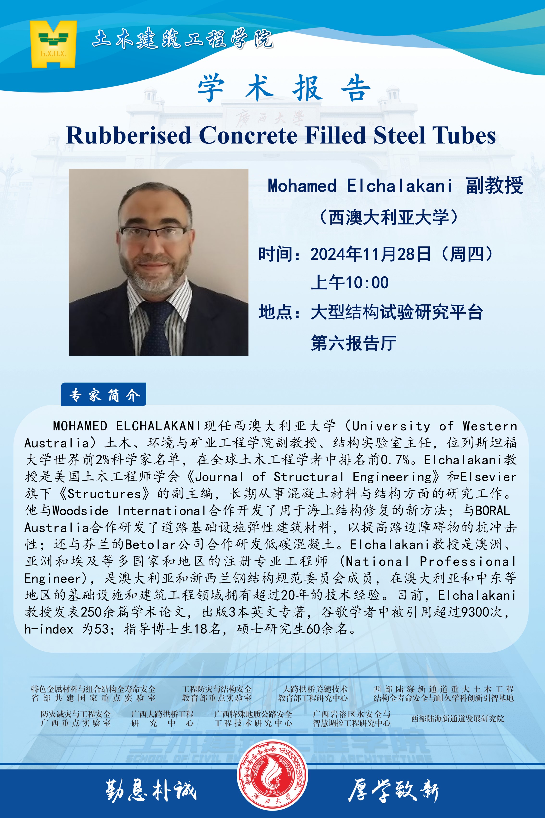 土建学院学术报告:Rubberised Concrete Filled Steel Tubes