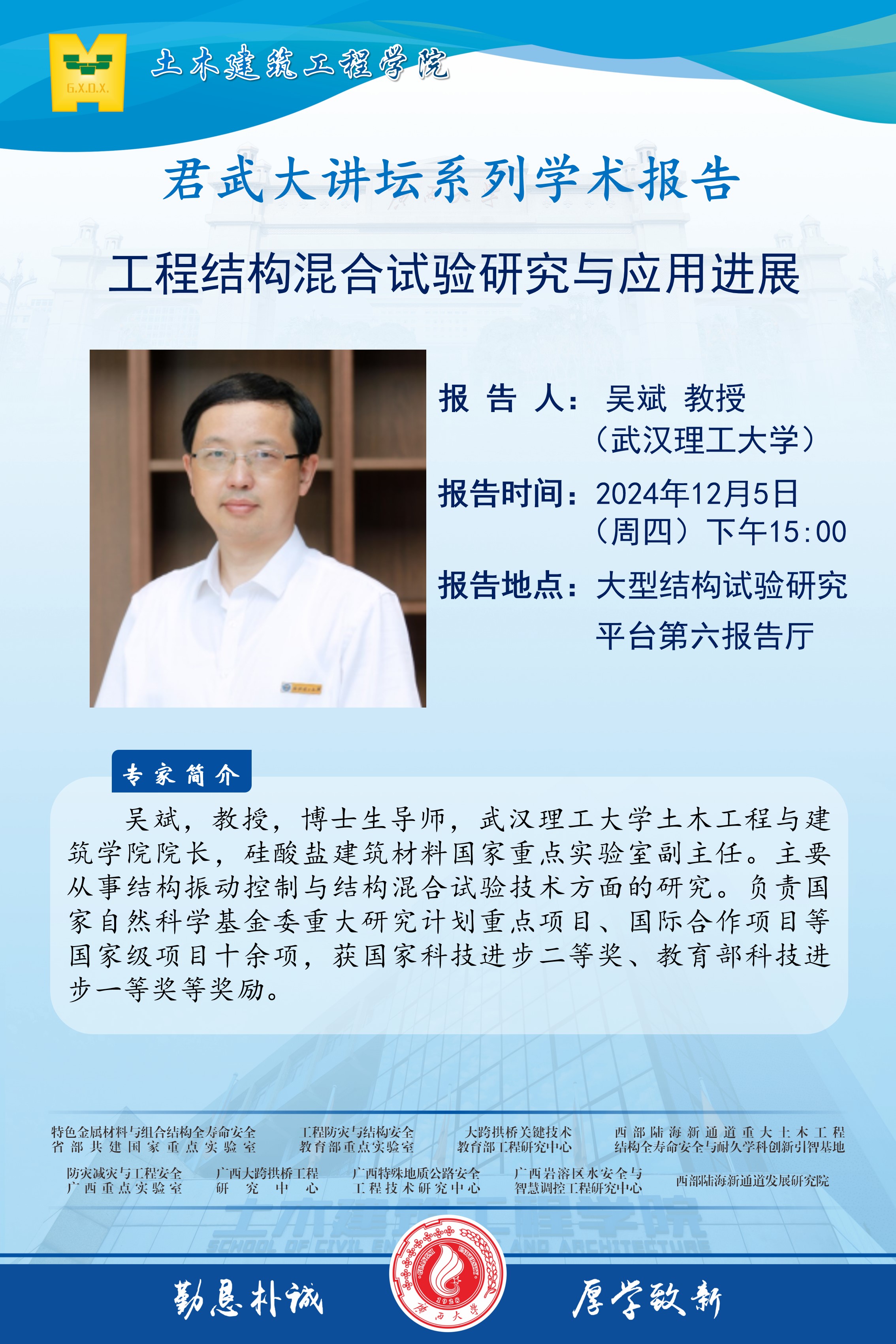 君武大讲坛:工程结构混合试验研究与应用进展