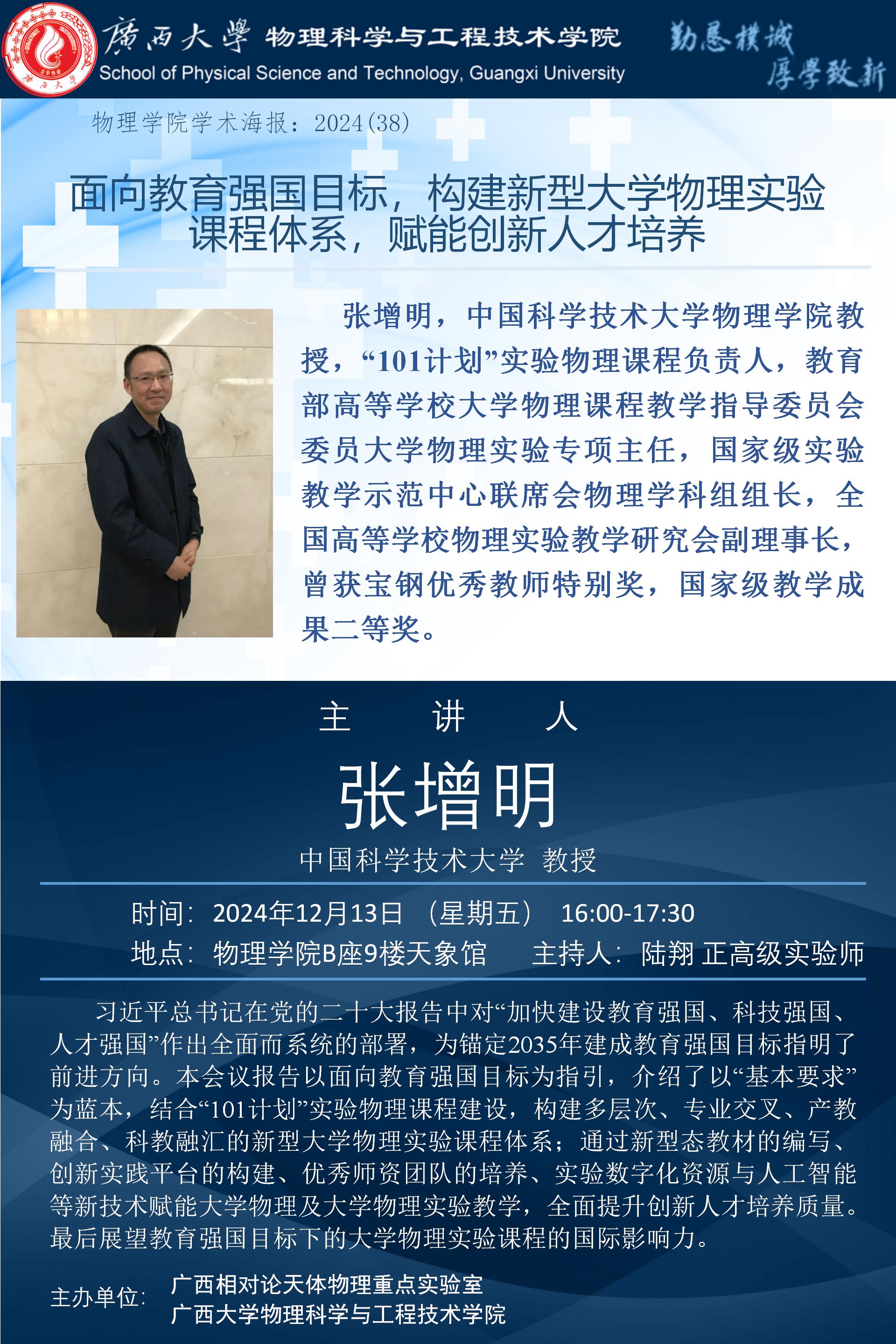 物理学院学术报告:面向教育强国目标,构建新型大学物理实验课程体系,赋能创新人才培养