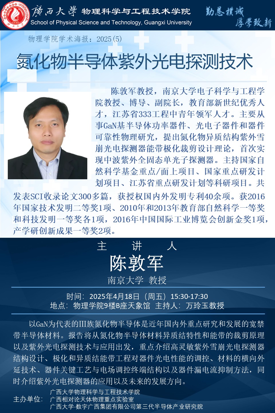 物理科学与工程技术学院学术报告:氮化物半导体紫外光电探测技术