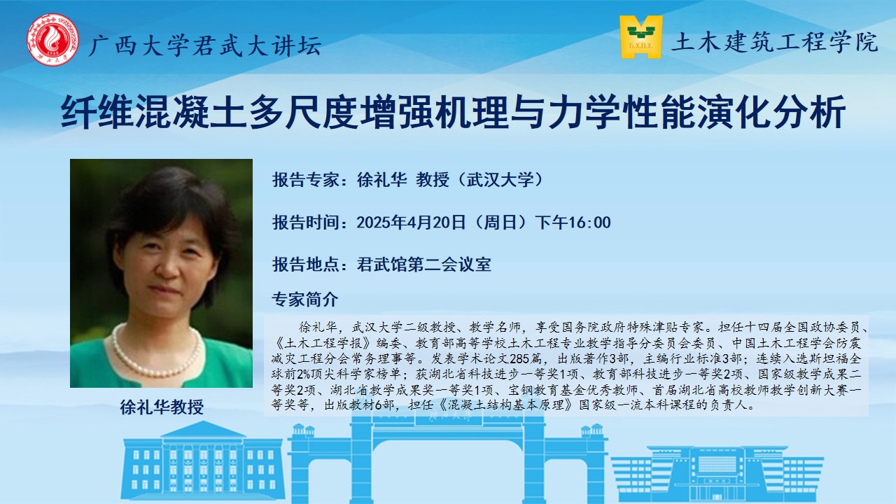 君武大讲坛、土木建筑工程学院学术报告:纤维混凝土多尺度增强机理与力学性能演化分析
