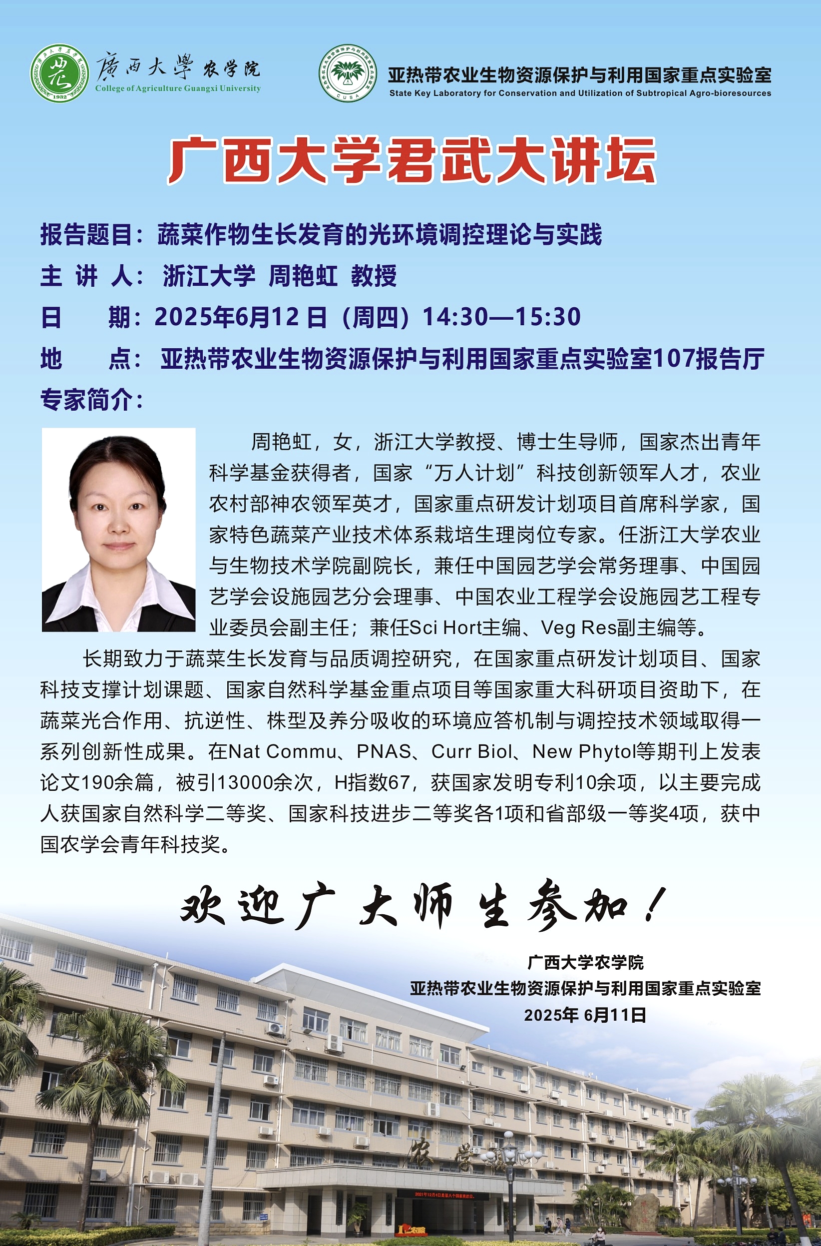 君武大讲坛:蔬菜作物生长发育的光环境调控理论与实践
