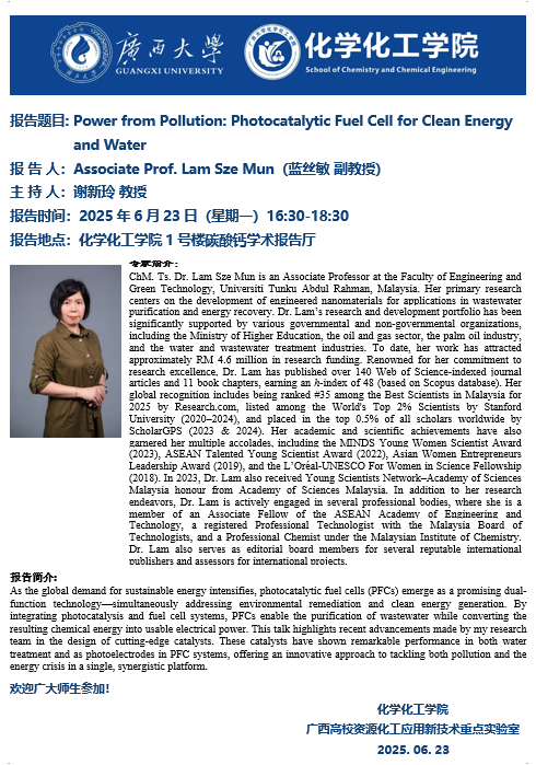 下一条:化学化工学院学术报告:Photocatalytic Palm Oil Mill Effluent Treatment and Feasibility of Energy Generation: Win-Win Strategies for Sustainability