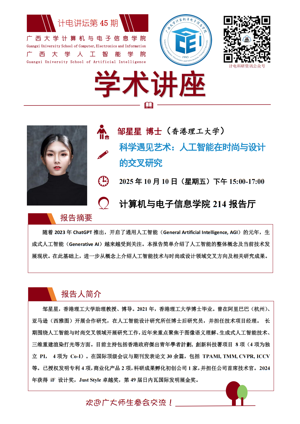 “计电讲坛”学术报告系列活动第45期:科学遇见艺术:人工智能在时尚与设计的交叉研究