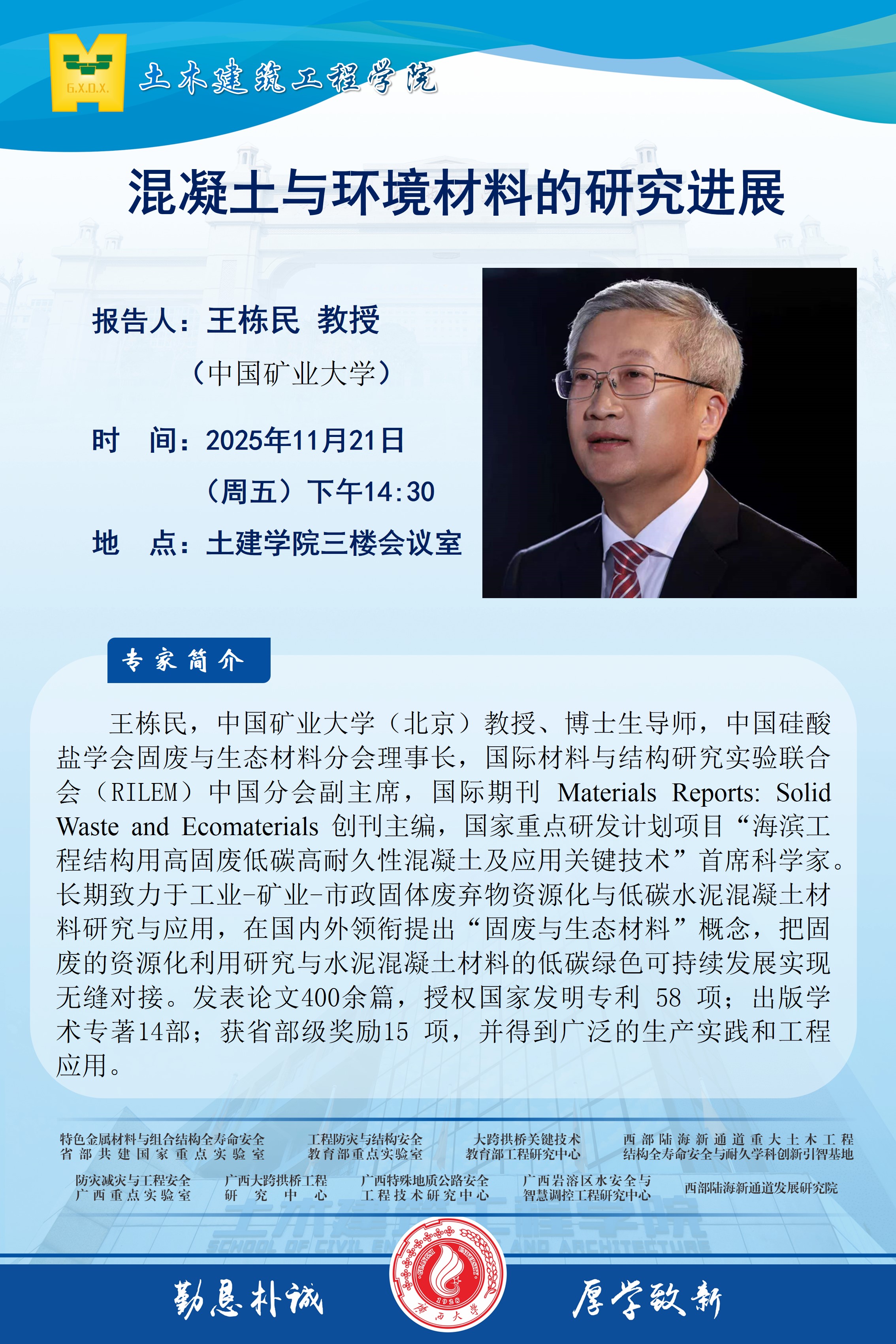 土木建筑工程学院学术报告:混凝土与环境材料的研究进展