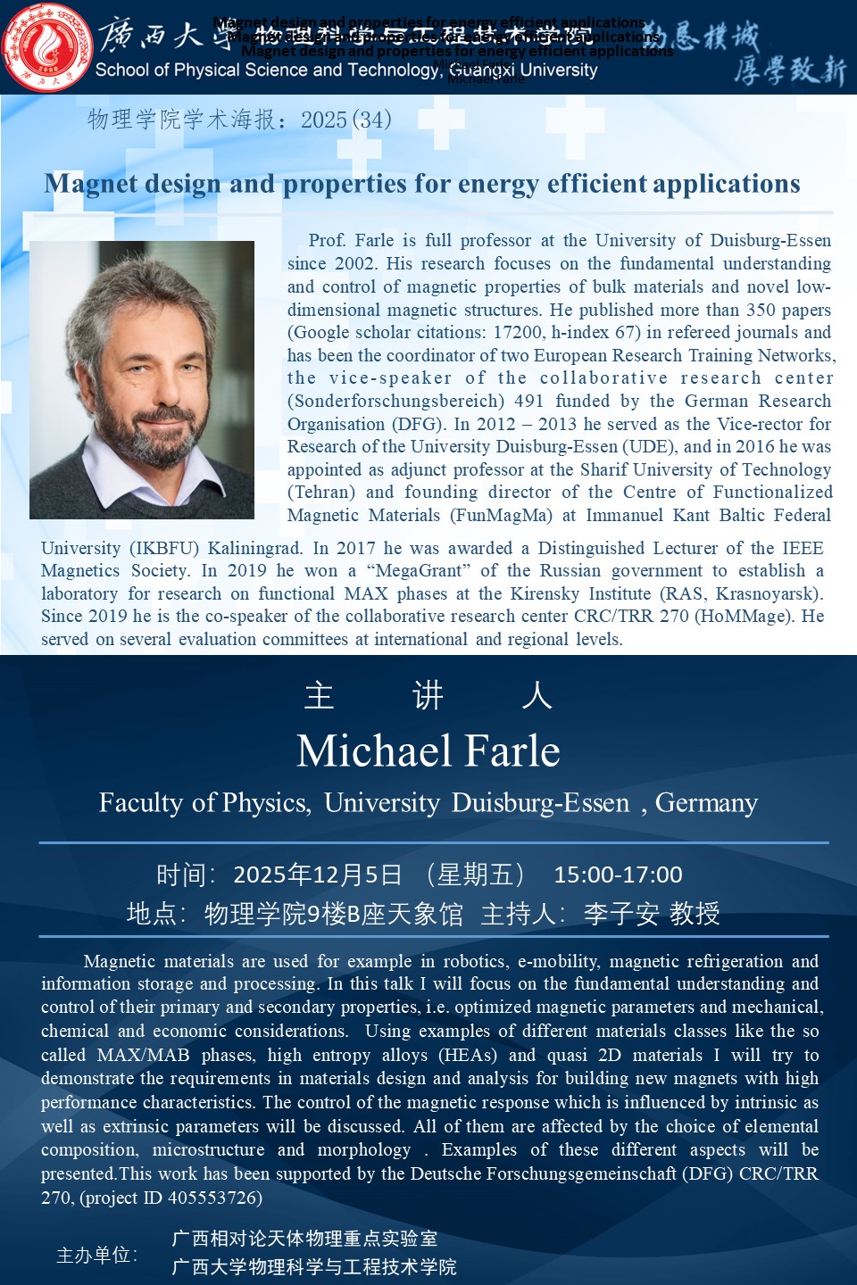 物理科学与工程技术学院学术报告: Magnet design and properties for energy efficient applications