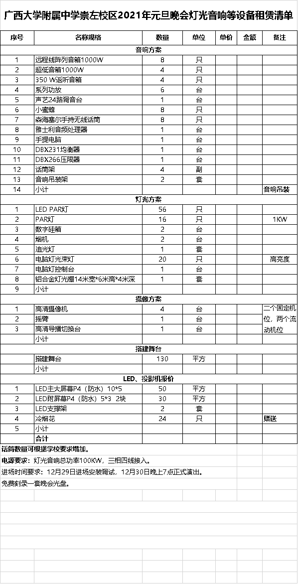 best365足球官网附属中学(南宁校区)2021年元旦晚会灯光音响等设备租赁清单 |
